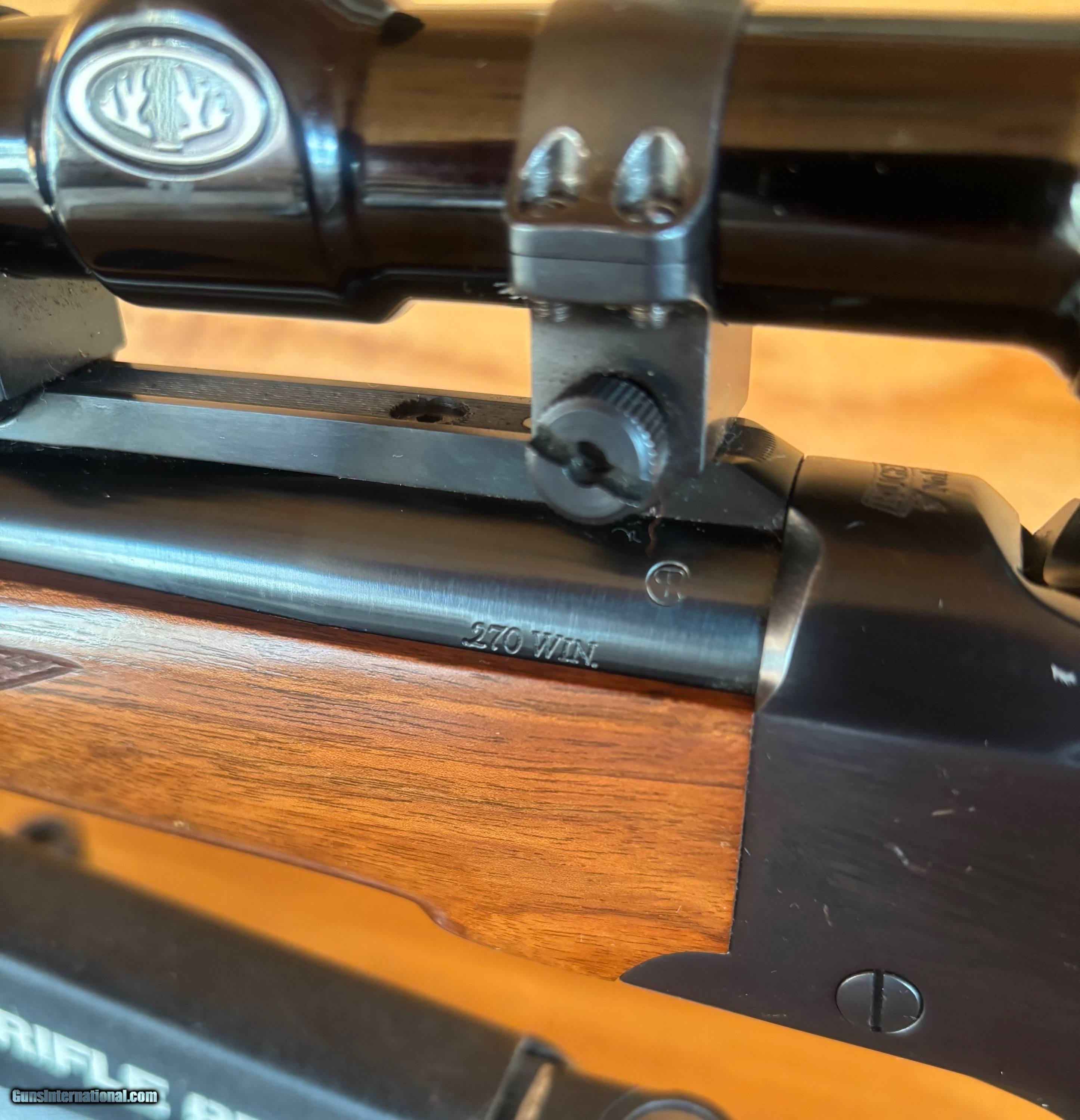 For sale is a beautiful Ruger no.1A Sporter in a .270. Metal bluing is sharp. Walnut stock, with nice figure and just a few minor scratches from hunting use. Comes with the Bushnell 3x9 scope pictured. Even the recoil pad is perfect. Rifle was manufactured in 1989 and is in good shape for over 35 years of age. Has a few minor scratches on receiver (see photo).