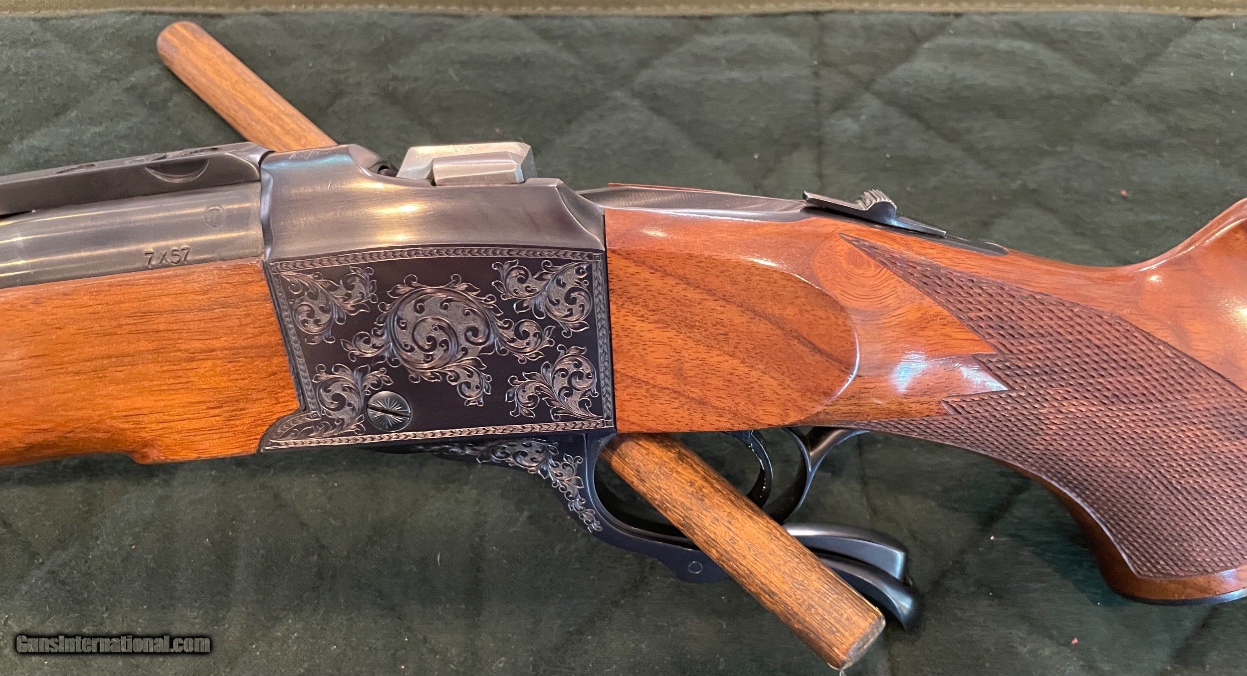 Ruger No. 1 Engraved Rifle in 7x57 With Beautiful Wood in 7x57 built in 1977 Early Red Pad Variation