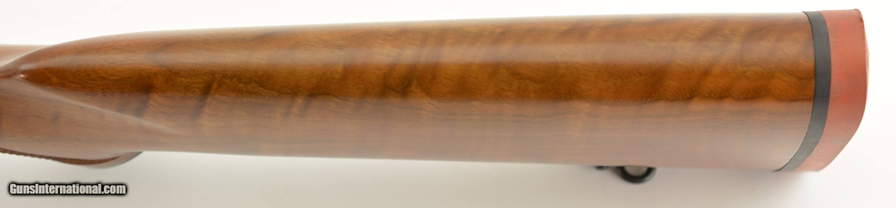 Description: Serial #130-15880, .458 Win. Magnum, 24" barrel with an excellent, bright bore. This is a 1975-made rifle that retains practically all of the original blue finish on the metal. The checkered walnut forend, and tiger stripe figured pistol-grip stock have virtually no wear or handling marks, and the latter is outfitted with a red Ruger recoil pad. Original QD sling swivels are also installed. The rifle is housed in the original, numbered Ruger cardboard shipping box with the original scope rings and manual. Also included is a 2022-dated Ruger factory letter that lists a shipping date of November, 1975 to Sloan's Sporting Goods Co. of Ridgefield, CT. This is a practically new-in-box, No. 1 "Tropical" rifle, and is chambered in a desirable dangerous game caliber. FFL SOLD |