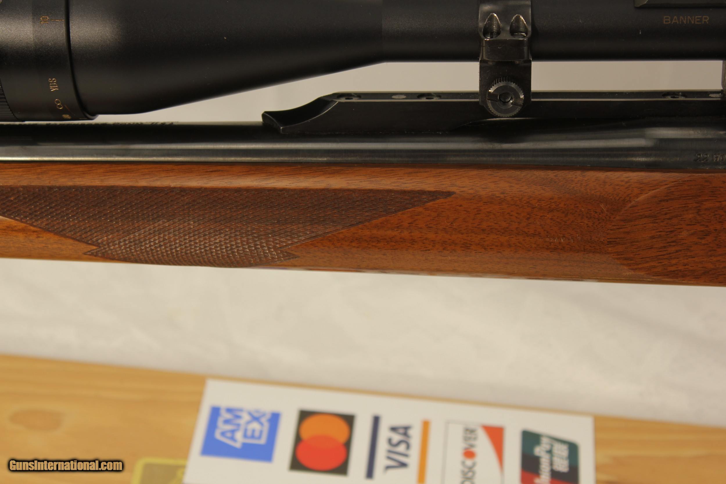 Description: This is one of the hard to find caliber, 22 Hornet. It has nice wood and has a Bushnell 6x18X scope with duplex reticle mounted with Ruger rings. It is in excellent condition with nice wood. The bore is bright and shiny in the 26 inch barrel. It has a red pad. Check it out with the ZOOM feature. SOLD |