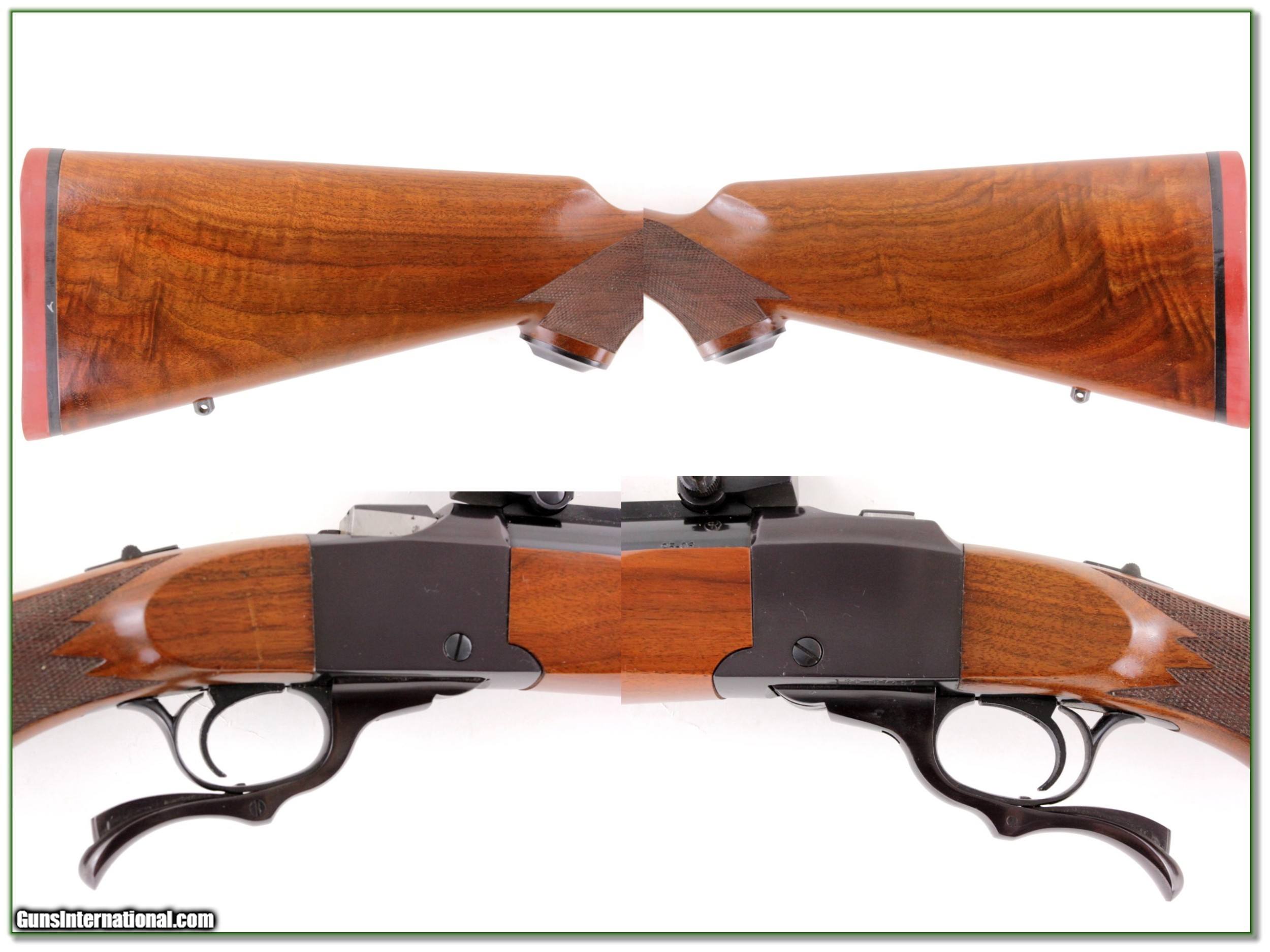 Description: Collectors and shooters this is a collector condition Ruger No.1 in 25-06. It is an older Red Pad with beautiful wood and comes with factory rings as seen. I see no marks or wear or signs of use on the metal and just a couple insignificant storage marks on the wood. The wood has even better grain in person than my pictures. It will make a find addition to your collection. Shipping with insurance is $39. Please email me with any questions or larger pictures. (Consign your quality firearms with Shooting Investments for only 12%! Let me know if you have any you would like to sell!) 19-0404 Payment: Payment is by Money Order, Cashiers Check or Personal Check. I can now also accept Credit Cards (MasterCard, Visa, Discover & American Express) with a 3% convenience fee. PayPal can be used for some items but never for firearms. Shipping: The shipping charge will be listed in each description. It is $39 for most firearms. Some heavy guns or those insured for over $2000 will be higher. Shipments to Alaska and Hawaii are higher because air shipment is required. Most firearms are shipped on Tuesday and Thursday and usually in 5 days of receipt of payment. We package all shipments carefully and insure them. Optics are shipped Priority Mail and most other non-firearm shipments are shipped First Class. Returns: Our return policy is simple. If for any reason you are not pleased with your purchase, you may return your item for a full refund of purchase price. Ammunition cannot be returned. It is important to us that you are happy. Guns cannot be fired or dissembled before returning them and they must be returned in the same condition as received. Notification of a return must occur with-in 3 days of receipt at your dealer. Shipping, convenience and dealer fees are not refundable and are the responsibility of the buyer. Lay-a-way: If needed, we offer a 60 day lay-a-way option on most firearms. It is 1/3 now, 1/3 in 30 days and 1/3 in 60 days. Lay-a-way firearm sales are final and if not completed the first payment cannot be returned. Consigning your firearms with Shooting Investments: We will help you get top dollar for your firearms. While most local guns shops charge 20% or more, our fee is only 12% with a minimum of $75. At your local gun shop it might take months to sell. Selling on-line provides instant access to thousands of interested buyers. You won’t find any other on-line dealer willing to sell your firearms for only 12% or listing every gun on 3 separate s. Selling through an House typically costs the seller 15% and the buyer an addition 15% (so 30%) and you have to wait several months to sell and longer to receive funds. If properly priced, we will sell your firearms in a few weeks. Send us an email or give us a call and we’ll explain how easy it is for you to get top dollar. Trading: Trading for use is really just buying your gun to re-sell. If you have a gun you want to trade, please email a picture and we will let you know what we can give or it. You will always get more if we sell it for you on consignment. Help for California Buyers: We are happy to ship to California. It is the buyer’s responsibility to make sure any item you buy is legal in your state. We are also happy to help with your purchase of a firearm from someone other than us. If you see a gun you would like to buy but the seller can’t or won’t ship to California they can ship to use and we’ll then ship it to your California dealer. The cost for this service is only $30 + shipping. Let us know if we can help! SOLD |
