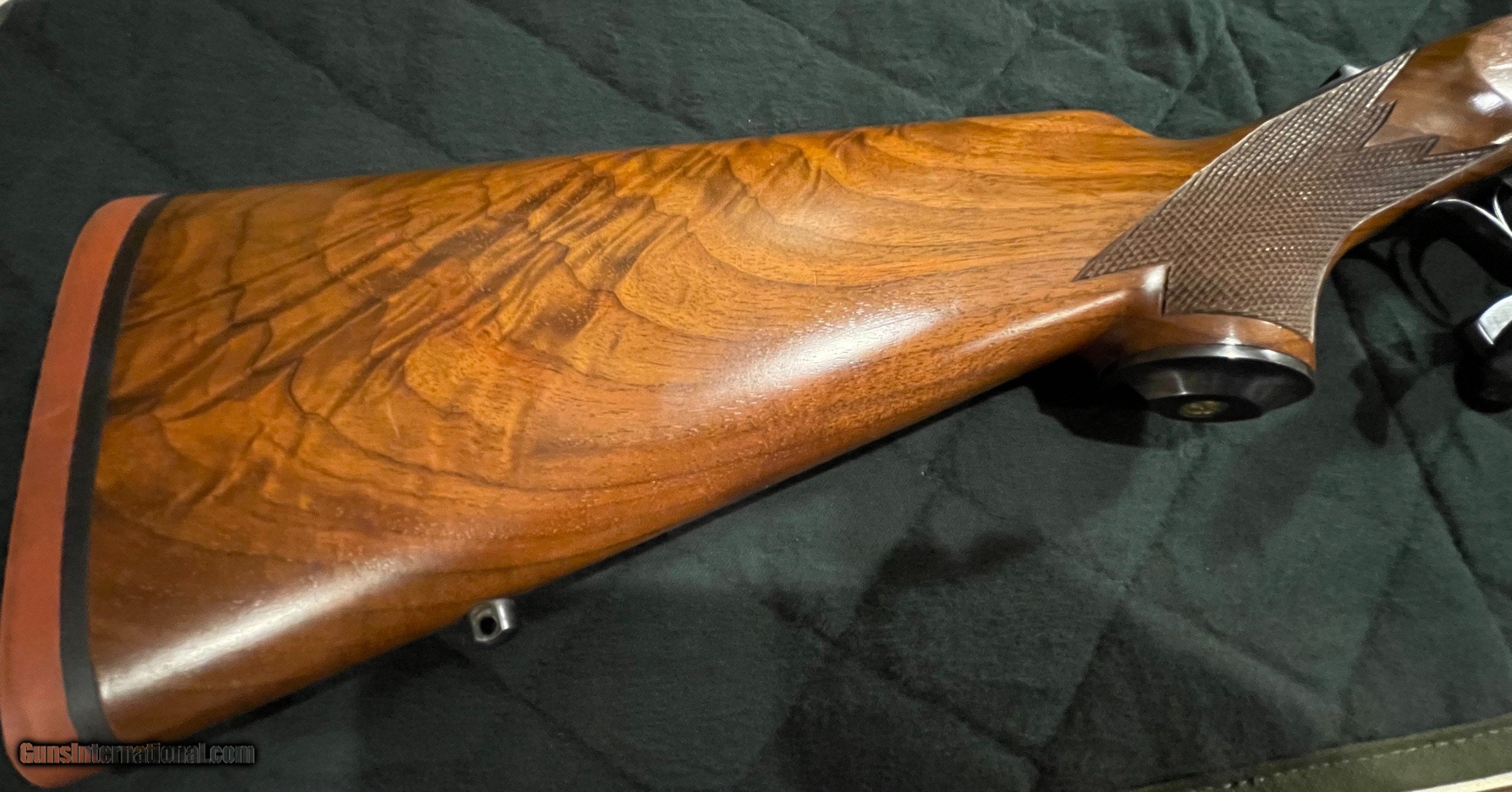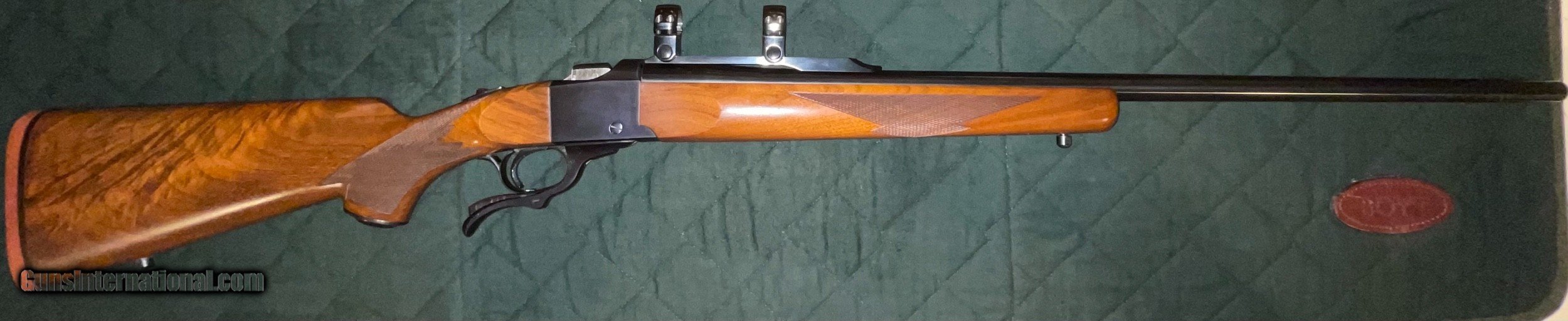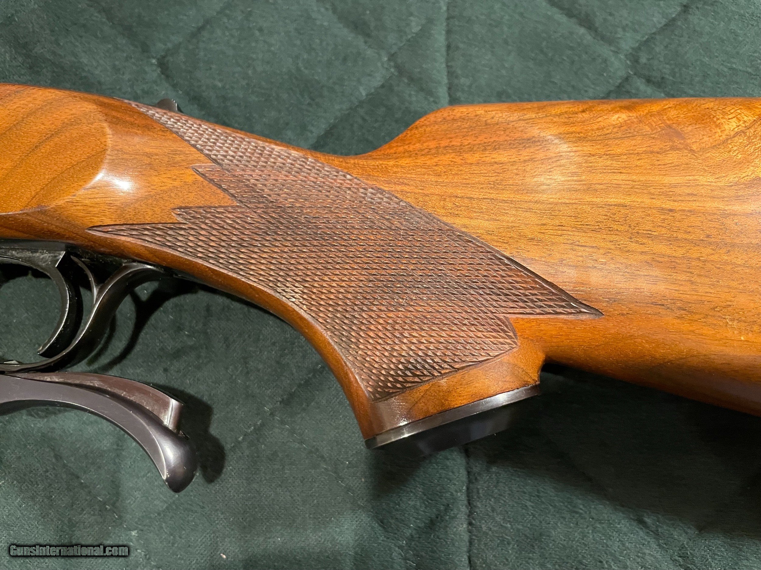 Description: SALE PENDING RECEIPT OF FUNDS TO DARREL IN WY: Ruger No. 1B in .30-06 from 1978 with Beautiful wood. Figure on both sides of the Buttstock. All original as to finish and condition. 26" barrel, original red rubber Ruger pad. Has Ruger scope rings. Handling marks only, and rifle is in Excellent plus overall condition. I will be listing more soon. Thanks for your interest and please see my other ads. SOLD Rifle Caliber: .30-06 Springfield Manufacturer: Ruger Model: No. 1B Serial Number: 131-xxxx Barrel Length: 26 Condition: Excellent Metal Condition: excellent Wood Condition: Excellent Plus Bore Condition: perfect Action: single shot falling block Triggers: factory- adjustable Stock: walnut Sights: none |