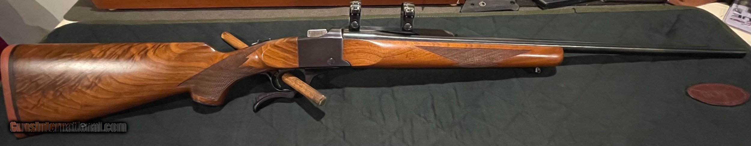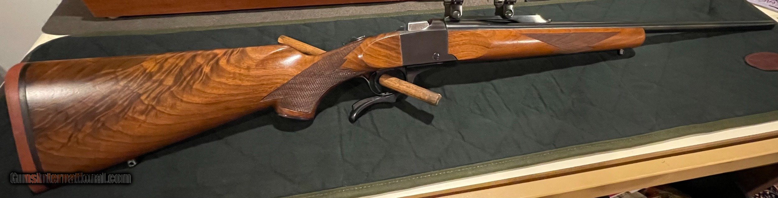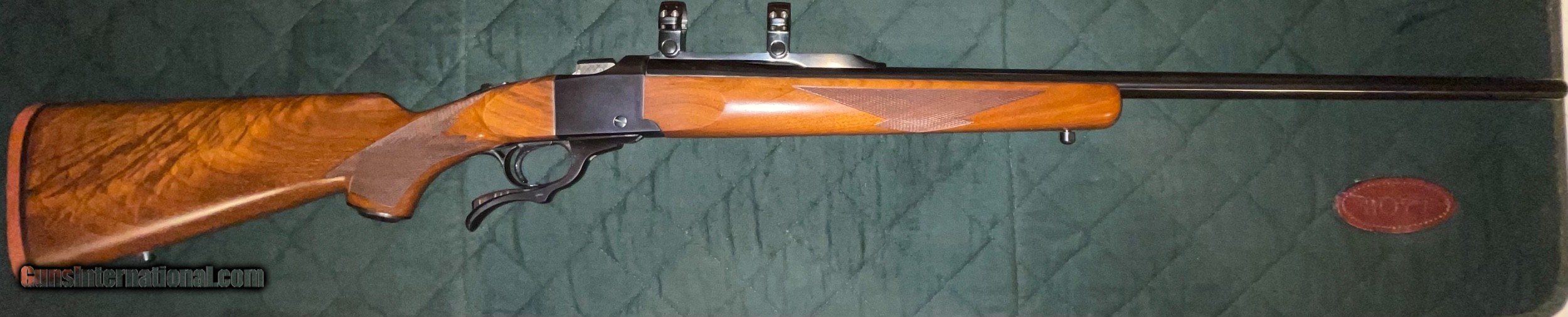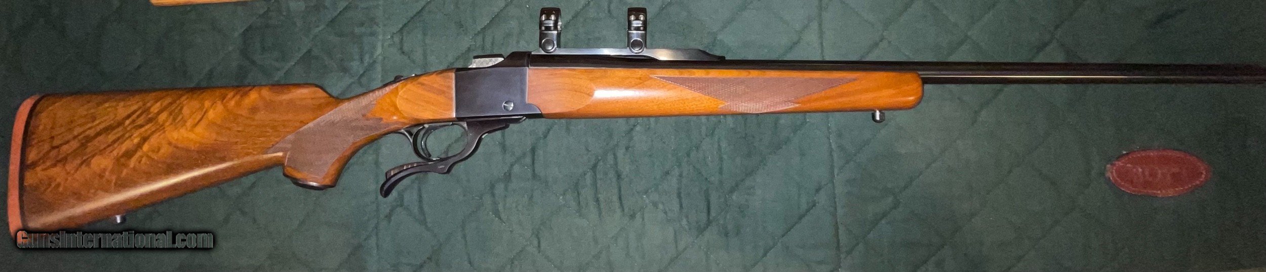 Description: SALE PENDING RECEIPT OF FUNDS TO DARREL IN WY: Ruger No. 1B in .30-06 from 1978 with Beautiful wood. Figure on both sides of the Buttstock. All original as to finish and condition. 26" barrel, original red rubber Ruger pad. Has Ruger scope rings. Handling marks only, and rifle is in Excellent plus overall condition. I will be listing more soon. Thanks for your interest and please see my other ads. SOLD Rifle Caliber: .30-06 Springfield Manufacturer: Ruger Model: No. 1B Serial Number: 131-xxxx Barrel Length: 26 Condition: Excellent Metal Condition: excellent Wood Condition: Excellent Plus Bore Condition: perfect Action: single shot falling block Triggers: factory- adjustable Stock: walnut Sights: none |