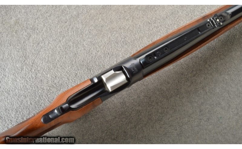 Description: Ruger No. 1 H Tropical chambered in .450/.400 Nitro Express (3)", (Model 11324). This is the rare version with the heavyweight 24 inch "D" contour barrel This beautiful big bore Safari Express rifle features full round barrel, banded ramp front sight, banded swivel on barrel, detachable barrel bridge with folding leaf sight that doubles as a scope base, single shot, drop breech, top tang safety, Farqharson lever, finely checkered two piece stocks, pistol grip cap, black rubber recoil pad, straight comb, oil finish and sling eye. Overall in near new condition. .450/400 Nitro Express SOLD Chambers: Single shot lever. Metal Condition: 99%. Wood Condition: 99%. Bore Condition: Like new. Barrels: 24" barrel. Triggers: Single. Stock Dimensions: LOP 13.5". Fore End: Checkered. Butt Pad: Rubber. Weight: 8.25 lbs Sights: Blade front & adjustable rear sights. Item Location: Owatonna, MN |