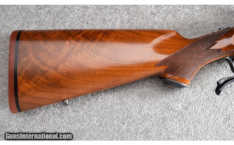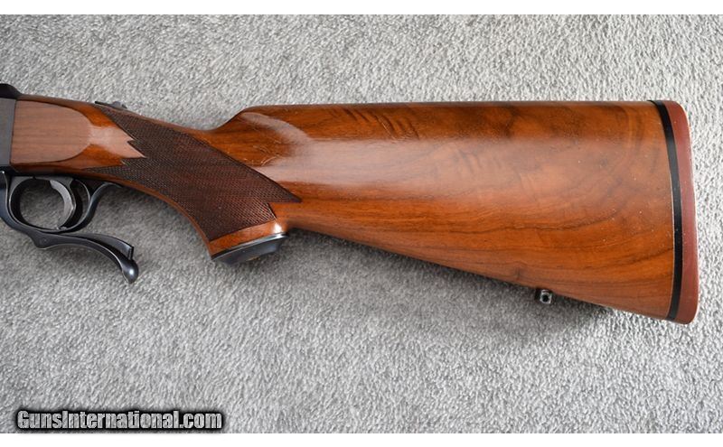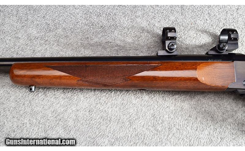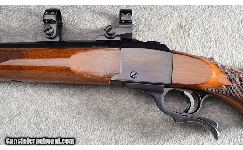 Description: This Ruger No. 1 Varminter was shipped from the factory in 1983 and remains in excellent overall condition showing only light use. Wood is nicely figured and shows some light marks on buttstock and forend. Blue and bore are excellent. This falling block action with typical Farquharson lever is still a beauty! Very Nice.... .220 Swift SOLD Metal Condition: Excellent Wood Condition: Excellent Bore Condition: Excellent Barrels: 26" Heavy Barrel Triggers: Factory Stock Dimensions: 13 7/8" LOP Fore End: Checkered Walnut Pistol Grip with Ruger Black Pistol Grip Cap - Checkered Walnut Forend Butt Pad: Ruger Red Rubber Butt Pad Weight: 9 1/4 lb Sights: None - Target Scope Block & Ruger Rings Item Location: Wheeling |