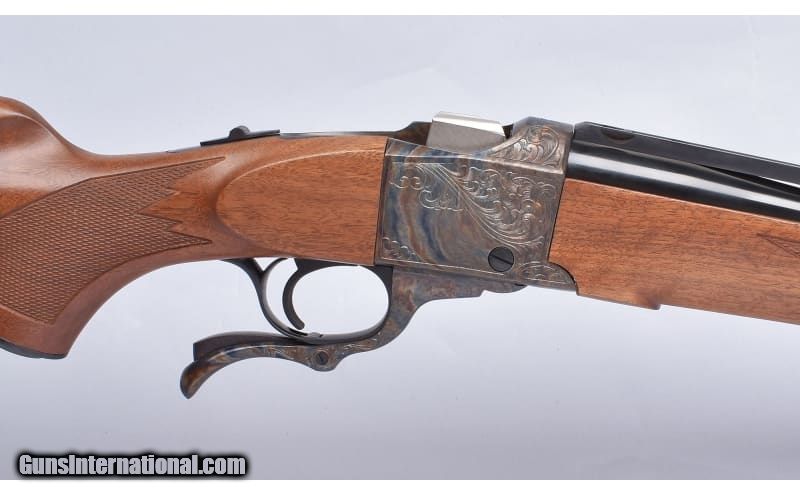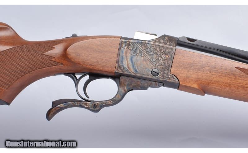 Description: Custom Ruger No.1A chambered in rare 250 Savage. Custom features include hand engraving by Tyler Gun Works with case colored receiver. New Old Stock Custom with factory box, scope rings and manual. .250 Savage SOLD Wood Condition: Walnut Bore Condition: Excellent Barrels: 24 Triggers: Folding Rear Sight on Quarter Rib. Banded Long Bead Front Fore End: Alexander Henry Forearm Butt Pad: Ruger Recoil Pad Weight: 7 lbs 3 oz Item Location: Buda, TX |