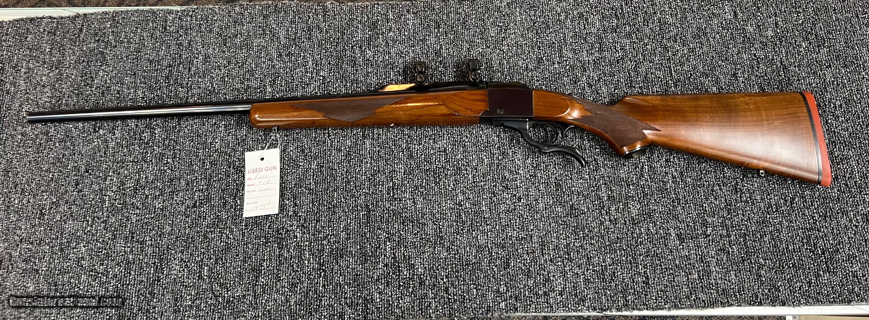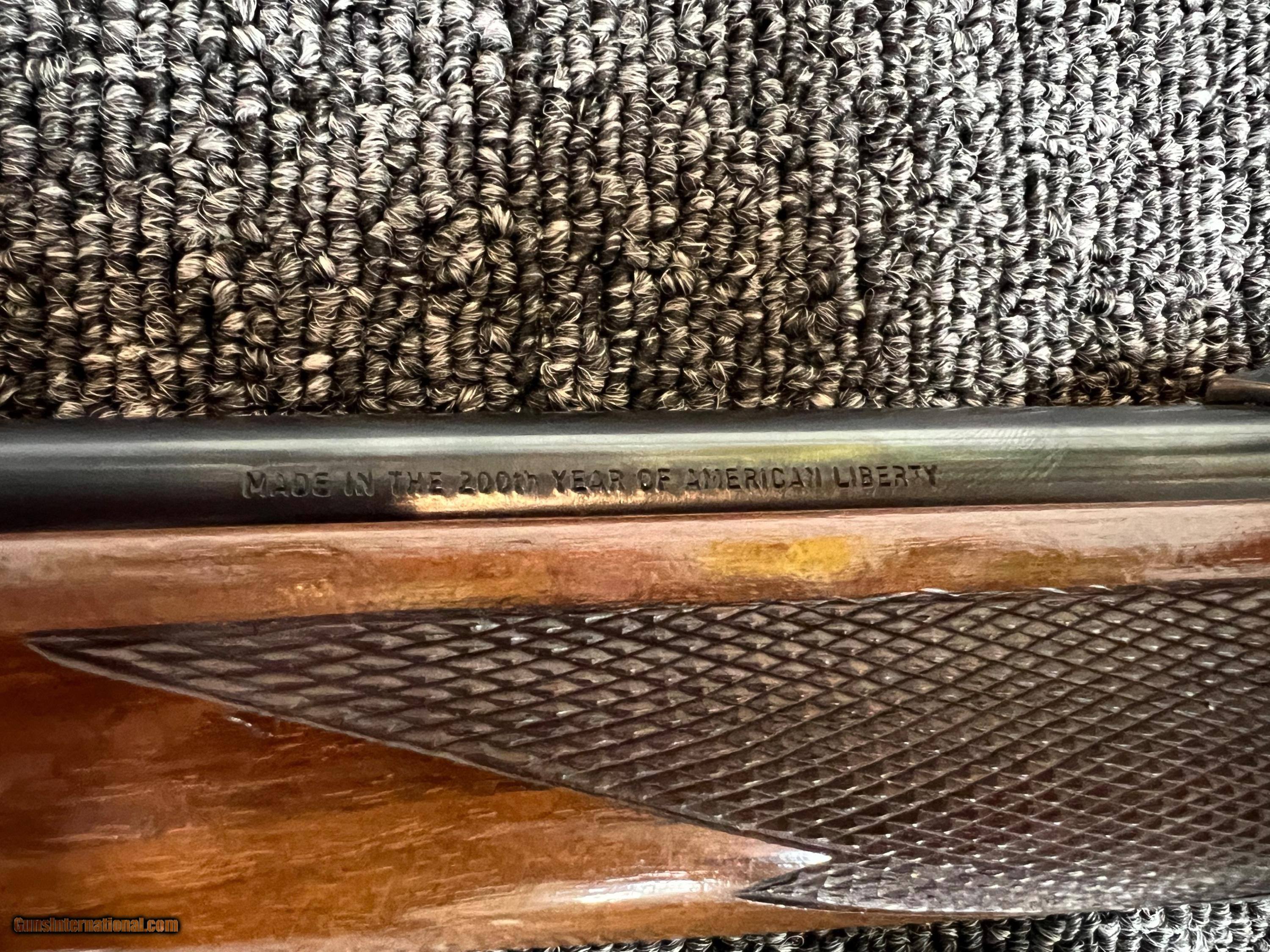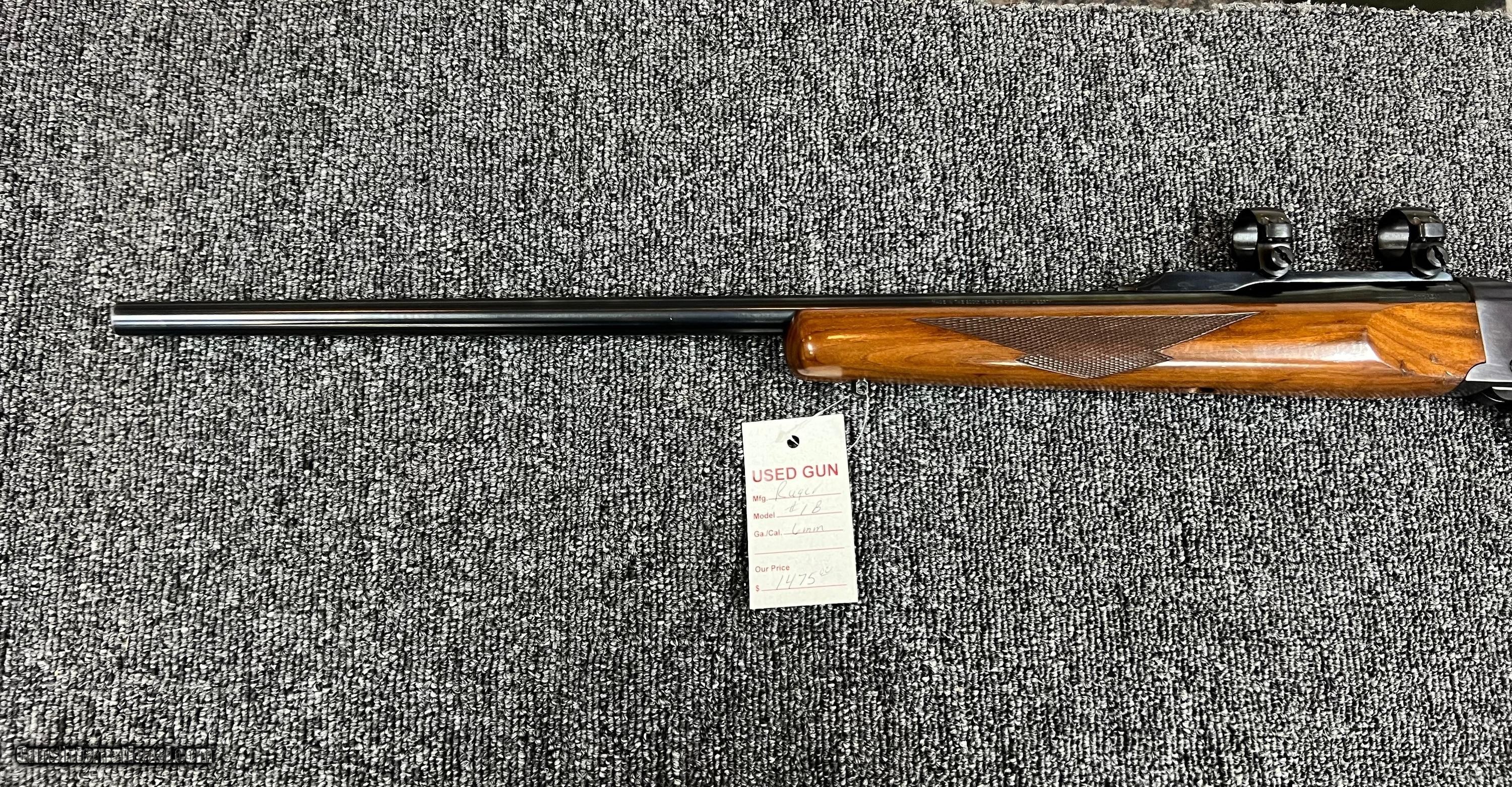 Description: Ruger number 1B "liberty" model chambered in 6mm Rem. This is a 200 year liberty anniversary model produced in 1976. The firearm is in overall very good condition. There is a few dings in the wood in teh forend near the receiver as well a one on the stock as pictured. Metal is in excellent condition. Barrel is 26" and has lots of rifling. Comes with scope rings. This does have the more sought after red recoil pad. Consignment sale. $1475...Buyer pays shipping and insurance W. Johnson Service Inc. 3654 N. Adrian Hwy. Adrian, MI 49221 517-265-2545 SOLD Rifle Caliber: 6mm Remington Manufacturer: Ruger Model: No 1 Barrel Length: 26 Condition: Very Good Metal Condition: Excellent Wood Condition: Good |
