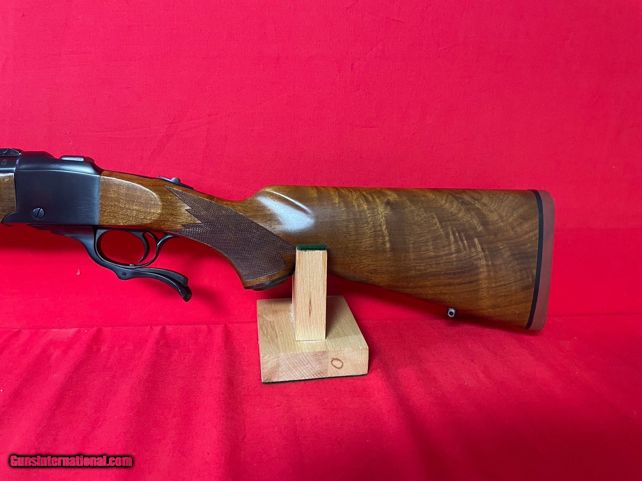 Description: Ruger-N0. 1- 7x57mm Mauser single shot,Excellent condition, a few small scratches, 22” barrel, 30mm scope rings, beautiful figured wood, red buttplate, mid 80’s rifle. Will ship to your FFL dealer cost $80.00 SOLD |