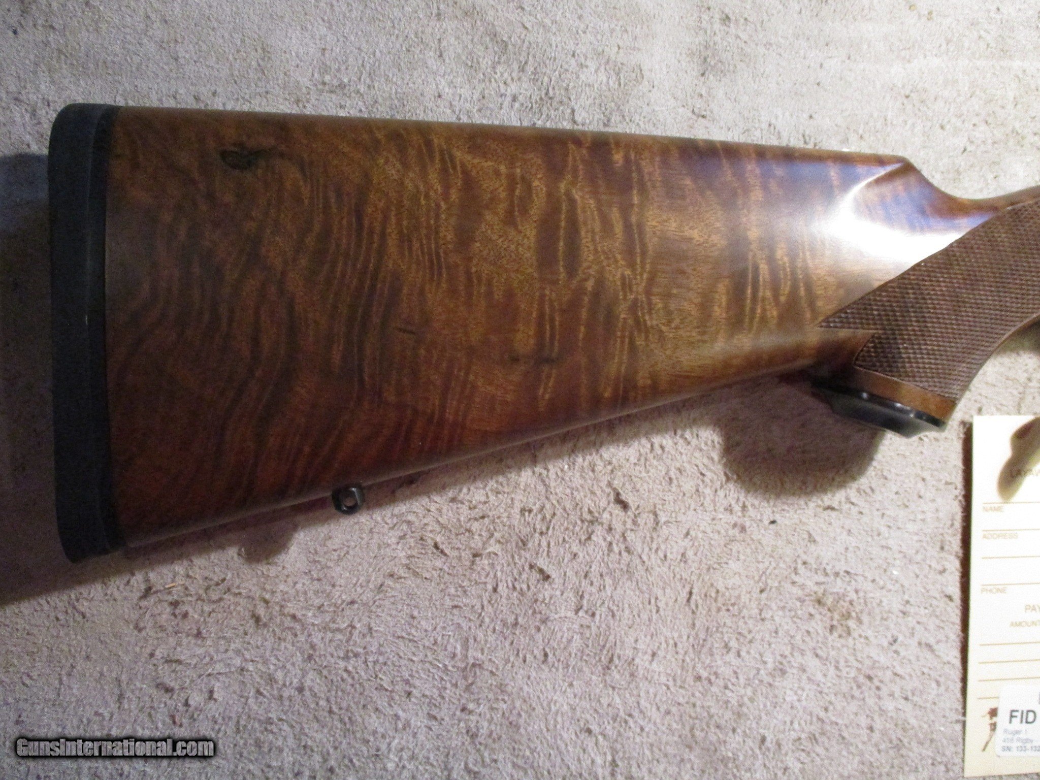 Description: Ruger Number 1, 416 Rigby, 24" new old stock. SN is 133-132xx, made in 1994. New old stock in factory box numbered to the gun. We will trade for silver and gold. We accept personal check, any certified funds, Venmo or Zelle. We can also take your credit card, +3%. Email me if you would like these pictures sent to you, they will come through bigger and better than on the listing page here. We do offer Layaway. Our standard terms are 25% down, 90 days. Initial deposit is not refundable. Email me with any questions. Please check your local laws to confirm it is legal to own in your state! Buyer pays $30 shipping and insurance to your FFL in the lower 48. AK, HI or PR is extra. I will ship to California, as long as it is legal, NO PROBLEM! All my guns come with a non-firing, 3 day unconditional return privilege, from the day UPS delivers to your dealer. Buyer pays shipping both ways if the gun comes back. Please make sure to make it to your FFL to inspect within the 3 days. If your gun doesn't have a box or case we can add a new hard case by PLANO for secure shipping for $30 if the buyer wishes (highly recommended, cheap insurance, really helps keep the UPS monster from eating my guns!). I am a licensed FFL, and will include a copy of my FFL with the gun for your dealer’s records. I will ship to a C&R if the gun is eligible. I will ship to California, but you need to confirm the gun is legal where you are, California or other. WE BUY AND CONSIGN GUNS AND GUN COLLECTIONS! We will travel to pick up collections! I am always looking for good clean, old original Winchesters to buy, consign, or trade, especially Pre '64's model 70's and model 54's. WE ALSO TRADE FOR CLASSIC CARS AND TRUCKS! We also trade for gold and silver. SOLD Rifle Caliber: .416 Rigby Manufacturer: Ruger Model: 1 Barrel Length: 24 Condition: New Old Stock |