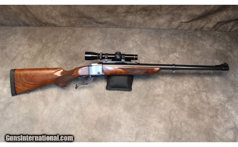 Description: This Ruger Number 1 Tropical is chambered in .458 Winchester Magnum. It comes with a Leupold Vari X II 1x4 scope mounted in steel Ruger rings. It is in good shape and has been well cared for. The previous owner reported that the rifle accompanied him to Alaska 3 times. It does have a few minor dents in the stock and a few minor rub marks on the barrel. .458 Winchester Magnum SOLD Chambers: .458 Winchester Magnum Metal Condition: Good Wood Condition: Good Bore Condition: Very Good Barrels: 24 Fore End: Walnut Butt Pad: Walnut with rubber but pad Weight: 12 lbs Sights: "Leupold Vari X II 1x4 scope, folding leaf rear, brass colored bead front Item Location: Columbia, MO |