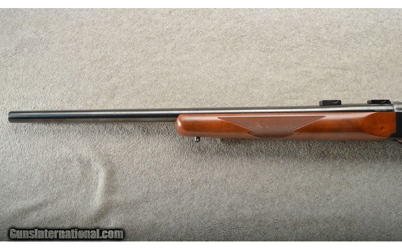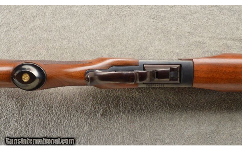 Description: This is a very close to new Ruger #1 Varmint in 6MM Rem. The blue steel could pass for new. The walnut stock and forearm are new looking. This is a nice clean rifle waiting for your scope. This fine rifle looks to have been fired very little and was made in 1999. 6mm Remington SOLD Chambers: Single shot. Metal Condition: Excellent. Wood Condition: Excellent. Bore Condition: Bright and shiny. Barrels: 24 Triggers: Single blue. Stock Dimensions: 13 5/8" LOP. Fore End: "Nice walnut with checkering and a sling stud, beavertail style. Butt Pad: "Matching walnut with a checkered pistol grip, sling stud, grip cap and black rubber butt pad. Weight: 8 lbs. 10 oz. Sights: Target blocks installed from the factory. Item Location: Owatonna, MN |