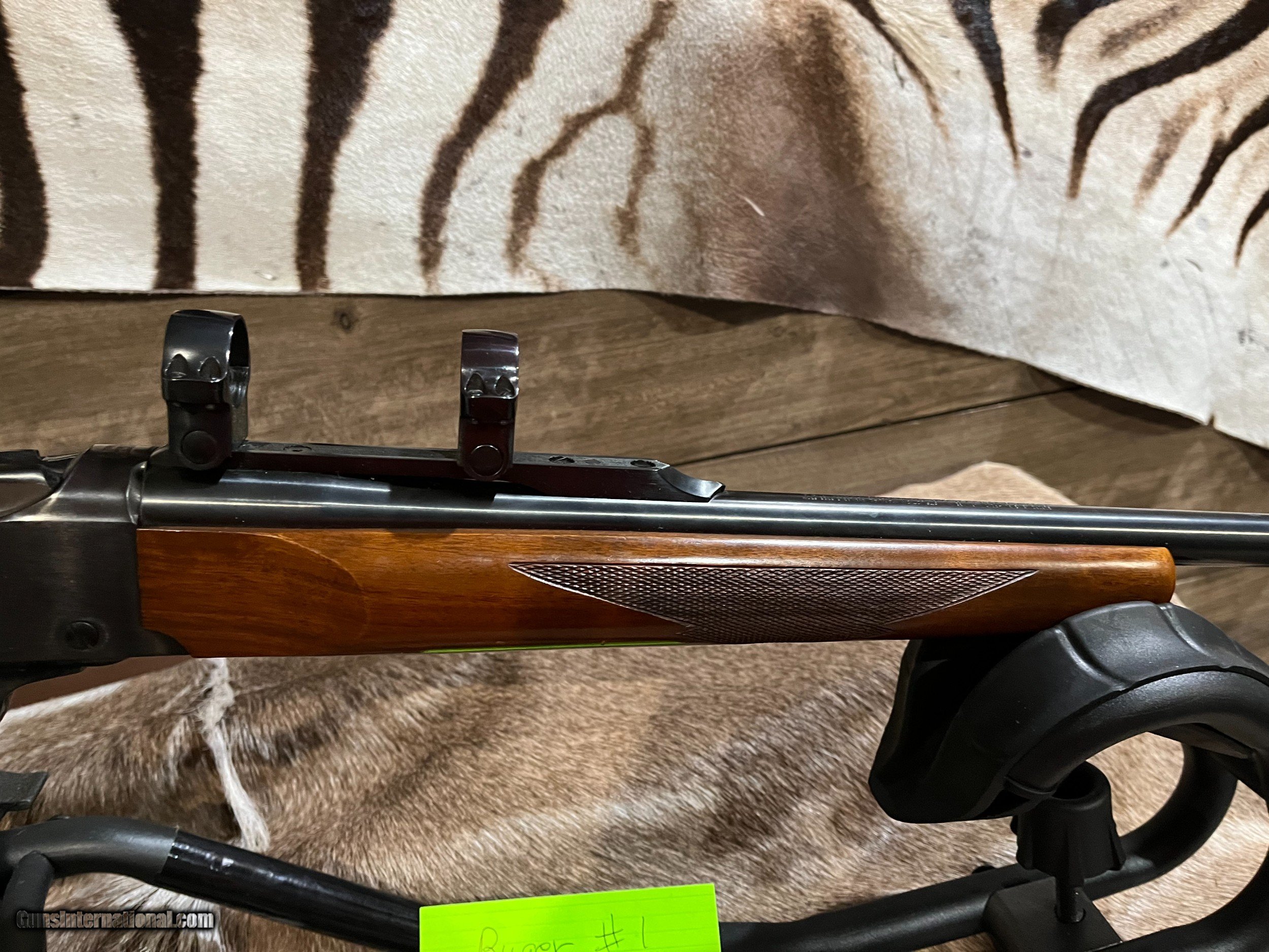 Description: This Ruger # 1 is in excellent condition . It as two slight marks on the right side of the stock on lower part of stock, . Other than that is is in excelleny condition and is in the hard to find 223 caliber. Please add $65.00 for shipping. We welcome reasonable offers. SOLD Rifle Caliber: .223 Remington Manufacturer: Ruger Model: Ruger #1 Serial Number: 132-34633 Barrel Length: 26. Inches Condition: Excellent Metal Condition: Excellect Wood Condition: Excellent Bore Condition: Excellent Barrel Type: Heavy LOP: 14 3/4 Manufacture Date: 1983 |