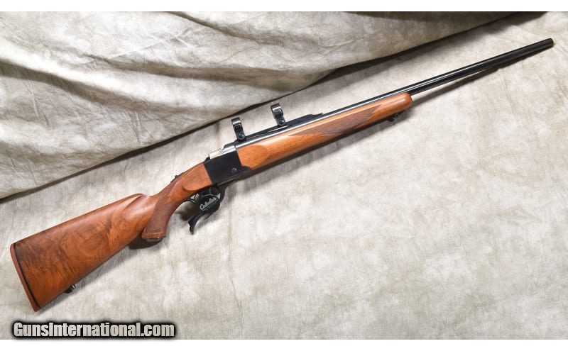 Description: Great 'fair chase" single shot rifle featuring cantilever barrel ready for scope of your choice. It has a heavily figured walnut stock and is chambered in .243 Win. for varmint control and medium size big game. .243 Winchester SOLD Chambers: Single shot. Metal Condition: Excellent. Wood Condition: Excellent. Bore Condition: Shiny and bright Barrels: 26-inch Triggers: Factory trigger Stock Dimensions: 13-5/8 inch LOP. Fore End: Matching walnut beavertail Butt Pad: Rubber pad Weight: 8 lb - 6 oz Sights: "Set up for scope, rings furnished. Item Location: Rogers |