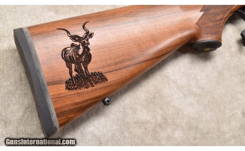 Description: This Ruger No. 1 chambered in .300 H&H Magnum is in like new condition with beautifully matched Walnut forend and buttstock. The Kudu is one of a special set of rifles Ruger issued as a limited series in 2008 with famed international hunter and author Craig Boddington. The .300 H&H is a fine African plains game cartridge, and suitable for all but the most dangerous big game and pachyderms. The Hawkeye matt bluing finish for concealment completes the big game rifle. .300 H&H Magnum SOLD Chambers: 1 Round. Metal Condition: Like new. Wood Condition: Like new. Bore Condition: Like new. Barrels: 26 Inches. Triggers: Factory. Stock Dimensions: LOP: 13.5 Inches. Butt Pad: Ruger black rubber. Weight: 7lbs 10 oz Sights: Front ramp with white bead. Rear express notch. Item Location: Rogers |