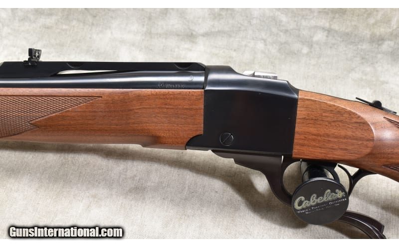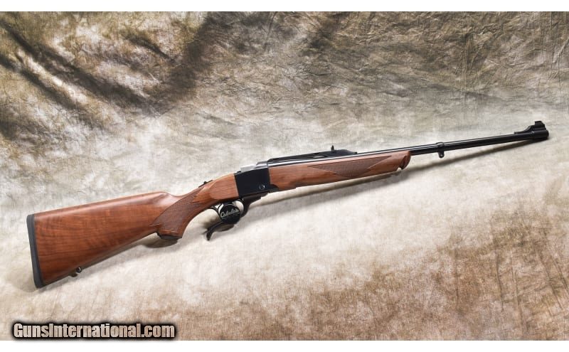 Description: This Ruger No.1 chambered in .35 Whelen is in like new condition and comes with original box, scope rings and manual. The .35 Whelen is a powerful medium-bore rifle cartridge that does not require a magnum action or a magnum bolt-face. This cartridge is more powerful than its parent, the .30-06 Springfield especially in killing power on large game. .35 Whelen SOLD Chambers: 1 Round. Metal Condition: Like new. One barely visible scratch on left side of receiver. Wood Condition: Like New. Bore Condition: Like new. Barrels: 22 Inches. Triggers: Factory. Stock Dimensions: LOP: 13.5 Inches. Butt Pad: Ruger black rubber. Weight: 6lbs 12 oz Sights: Front ramp with brass bead. Rear flip down notch and express rail. Item Location: Rogers |