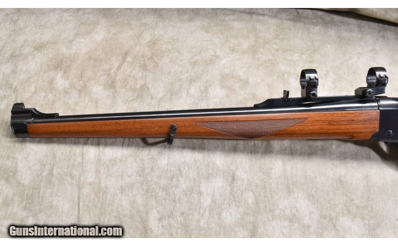 Description: This in the International version with the full-length "Mannlicher" stock. It was manufactured in 1984 and features matched fore end and stock with nice grain. 7x57 Mauser SOLD Chambers: Single shot Metal Condition: "Very good. There is a little rust on the receiver near the block, rigt side; both sides of the lever. Wood Condition: Very good. Minor handling marks. Bore Condition: Shiny and bright with good rifling. Barrels: 26-inch Triggers: Factory trigger. Stock Dimensions: 13-5/8 inch LOP. Fore End: Full-length walnut. Butt Pad: Rubber pad. Weight: 7 lb - 8 oz Sights: "Gold bead and folding leaf open sights, set up for your choice of scope. Item Location: Rogers |