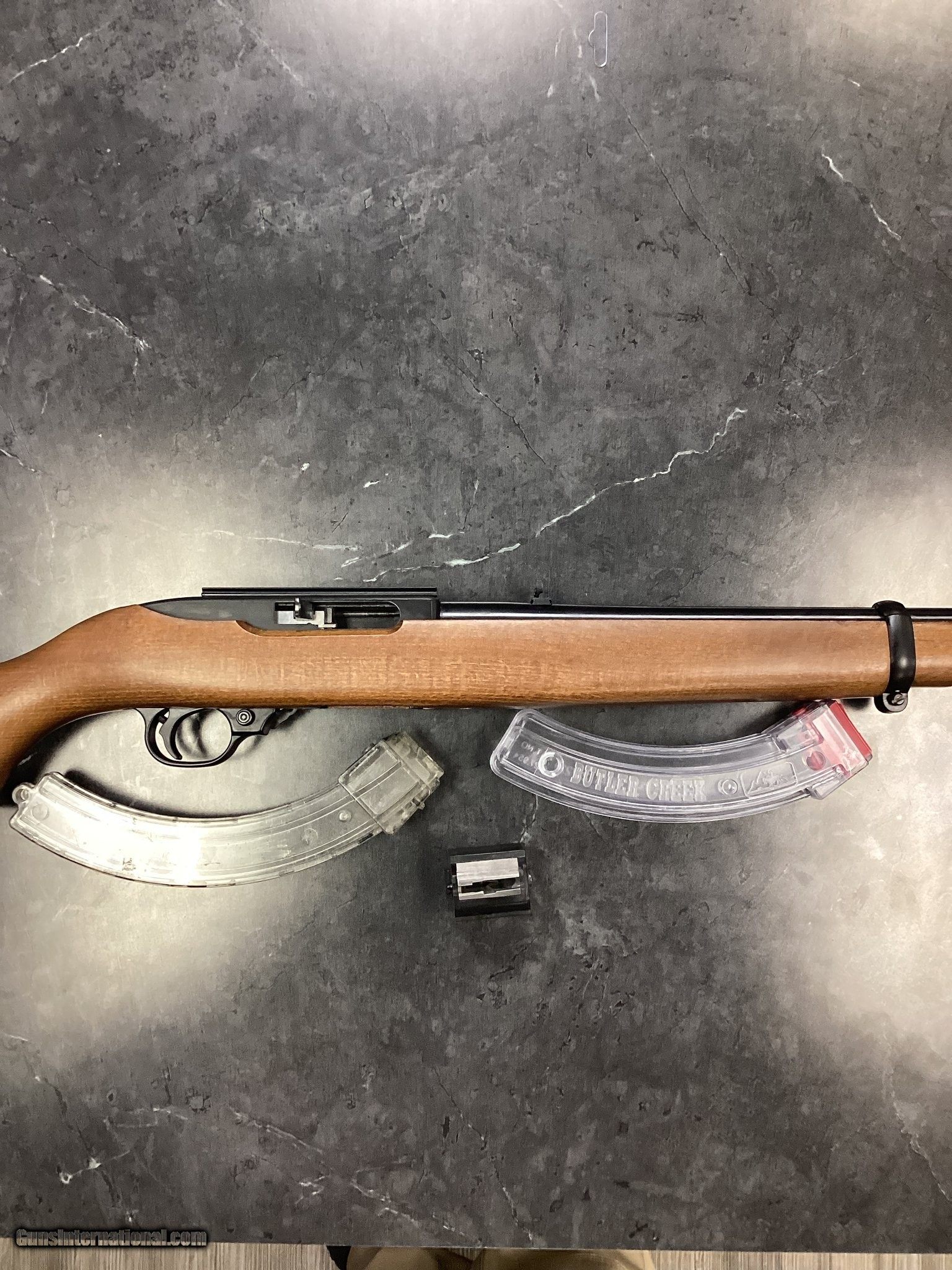 Description: Guns Listing ID: 579935 1 firearm 40th Anniversary, 2 aftermarket mags, 1 stock 10 rd mag, Ruger soft case Manufacturer: RUGER Model: 10/22 Caliber Info: .22 LR Condition: Used - Non-Certified Barrels: 18.75" BARREL Action: SEMI AUTOMATIC Finish: black /w wood stock Price: $319.99 Contact Seller |
