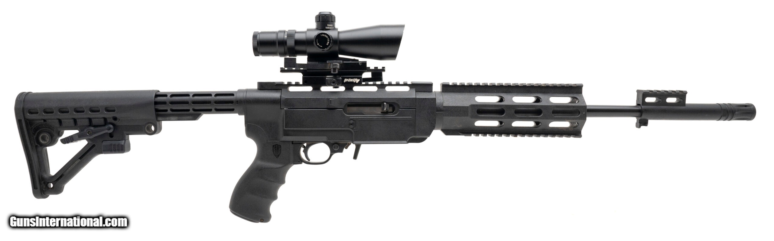 Description: "SN: B335-85049. Modern Production, .22 with a 16.5"" Barrel. Bore is Bright with Strong Rifling. Semi Auto Rimfire Rifle with a 3-9x42mm Target Sports Tactical Scope. Black Finish and Synthetic Stock is in Very Good Condition with Wear Noted. SOLD |