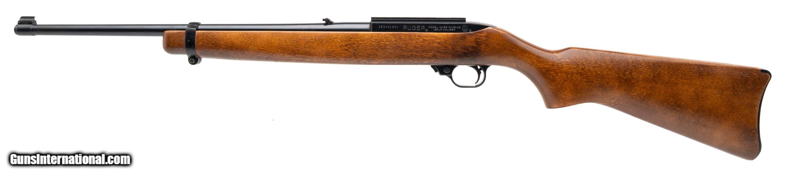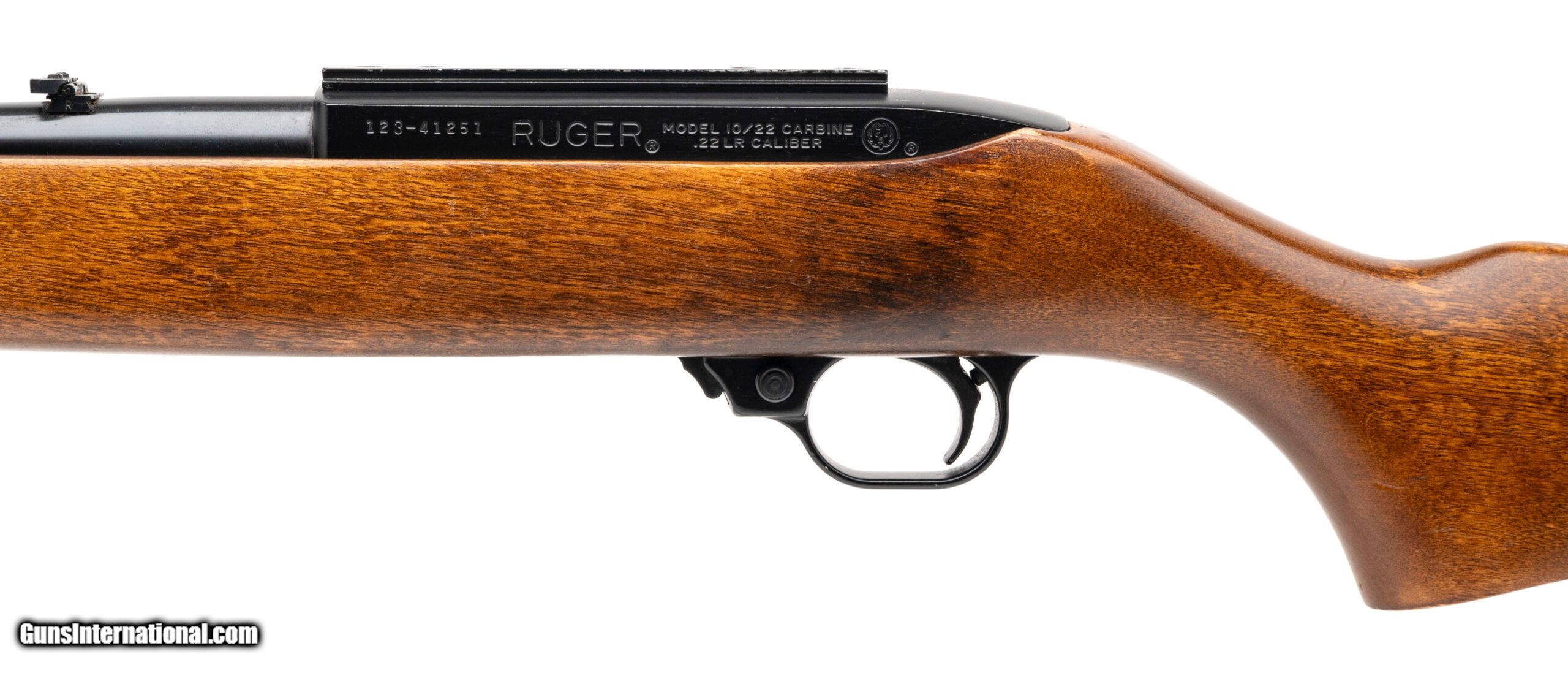 Description: "Serial number 123-41251. Made in 1982 with an 18.5-inch barrel that has a bright bore with strong visible rifling. This lightly used Standard model 10/22 carbine is in very good overall condition with original factory finish across the metallic parts that reveals some bare metal showing only on the Weaver-style combination scope base adapter. This vintage example has an aluminum trigger housing unlike the heat-stabilized, glass-filled, polymer trigger housings used on the current production guns. Comes with a Ruger factory 10-round rotary magazine. Price: $275.00 Contact Seller |
