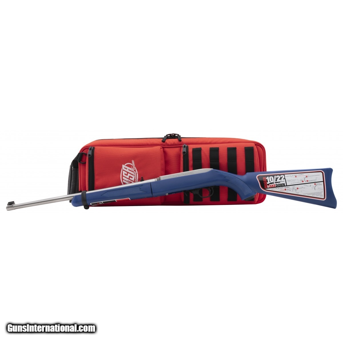 SN:GOLD-0846. Talo exclusive, USA shooting team limited edition takedown model. One of 5000, stainless finish in a blue laminate stock. In excellent condition. Comes with unique red & white case, lock & paperwork.