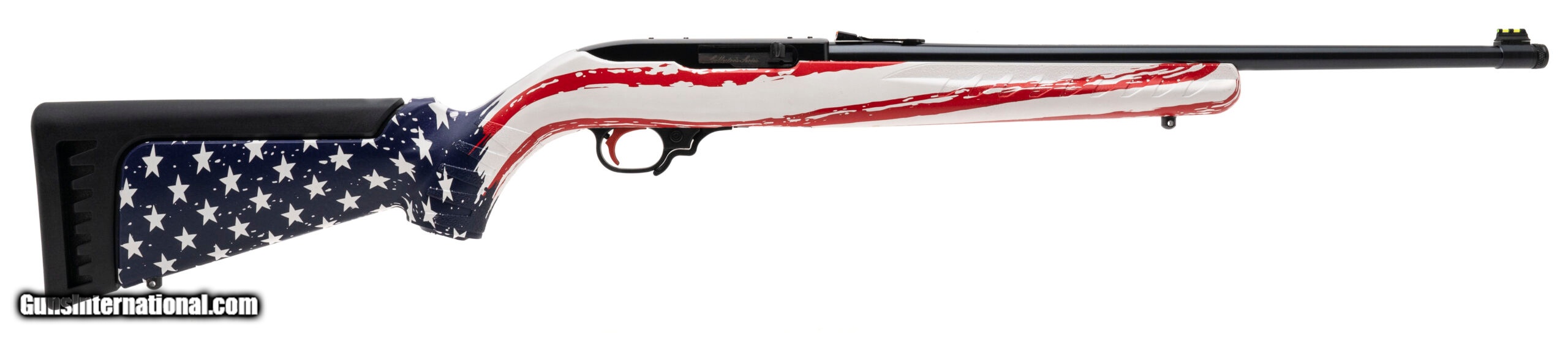 Description: "Ruger 10/22 Collector's Series Rifle .22LR. Semi-automatic with an 18.5"" Threaded Barrel, Black Satin Finish, American Camo Dipped Synthetic Stock, Adjustable Rear & Fiber Optic Front Sight, and BX-Trigger. 10 Round Magazine Capacity. 1/2x28"" Thread Pitch. NEW. UPC:736676312078 (STOCK PHOTO) SOLD |