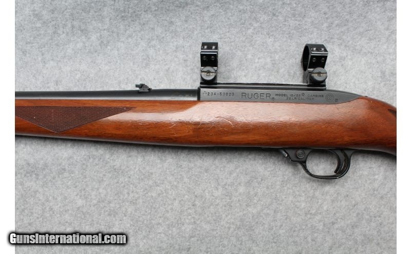 Description: Sturm Ruger & Co. 10/22 Carbine Sporter .22 Long Rifle SOLD Barrels: 18 in Weight: 5 lbs Sights: Adjustable Notch Rear; 1-Piece Mount w/Rings Chokes: Threaded w/Protector Item Location: Farmington, UT |