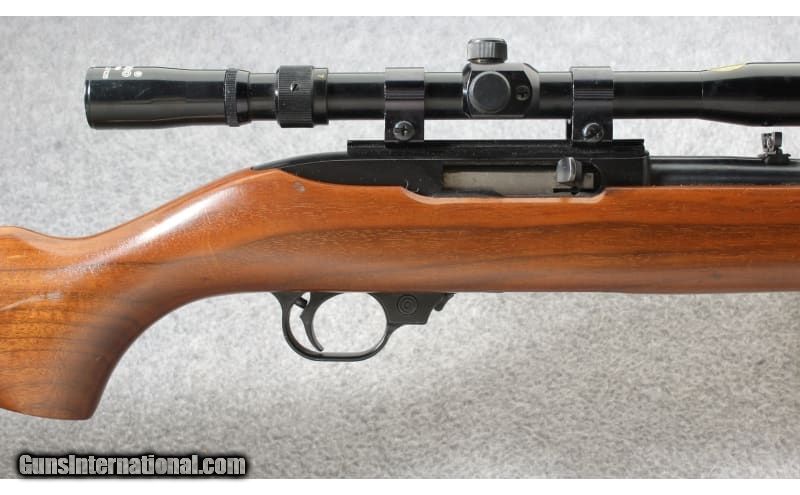 Description: The Ruger® 10/22® is one of the most popular, and widely used rimfire rifles in the US. And justifiably so—the 10/22 has had a solid reputation for reliability and accuracy for over 50 years, making it a favorite for target shooting, plinking, and small game hunting. The standard 10/22 Carbine comes with a walnut stock, a blued barrel, and a satin black finished receiver. The 10/22 utilizes a blowback semi-auto action, and a 10-shot rotary magazine, both of which are legendary for reliability. The hammer-forged barrel locks into the receiver by a unique 2-screw, V-block system that provides unsurpassed accuracy for a mass-produced rimfire rifle. The Carbine model comes with a fine, bead front sight and an adjustable, folding rear sight and Tasco scope. The short and light 10/22 Carbine handles incredibly well by adult and youth shooters alike. The popularity of the Ruger 10/22 has led to a myriad of after-market 10/22 accessories, making it one of the most customizable firearms ever made. The Ruger 10/22 Carbine is a go-to firearm for anyone serious about shooting, training, self-defense, or hunting. Made in USA 1978. .22 Long Rifle SOLD Metal Condition: Very good with some scratches and nicks in the finish Wood Condition: Good with scratches and dents Bore Condition: Excellent Barrels: 18.5 inch barrel Stock Dimensions: 13 1/2 inch LOP Weight: 5 Lbs. 8 Oz. Sights: Tasco 3.7X scope Item Location: Lehi, UT |