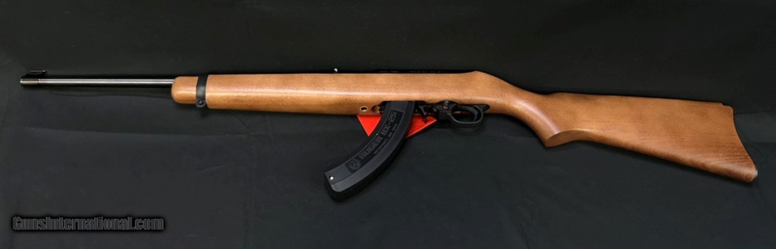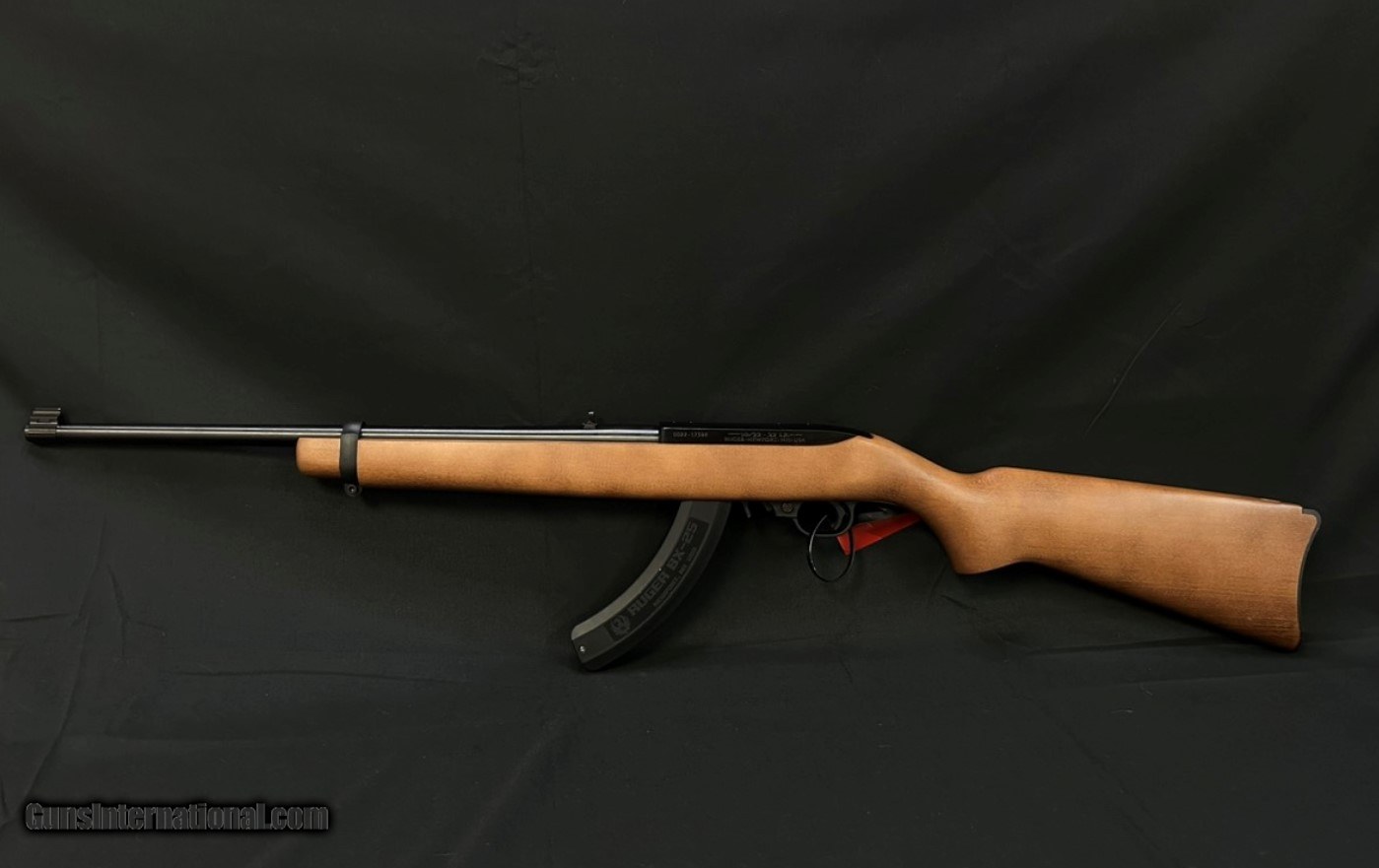 Description: Guns Listing ID: 1352168 RUGER RIFLE 1103 10/22 22LR CARBINE AUTOLOADING RIFLE WITH 25 ROUND MAGAZINE Stock Hardwood Front Sight Gold Bead Rear Sight Adjustable Barrel Material Alloy Steel Thread Pattern N/A Twist1:16\" RH Capacity10 Barrel Finish Satin Black Weigh t5 lb. Overall Length 37\" Barrel Length 18.50\" Grooves 6 SOLD Manufacturer: RUGER Model: 10-22 Caliber Info: .22 LR Condition: Used - Non-Certified Barrels: 18.5 BARREL Finish: WOOD |