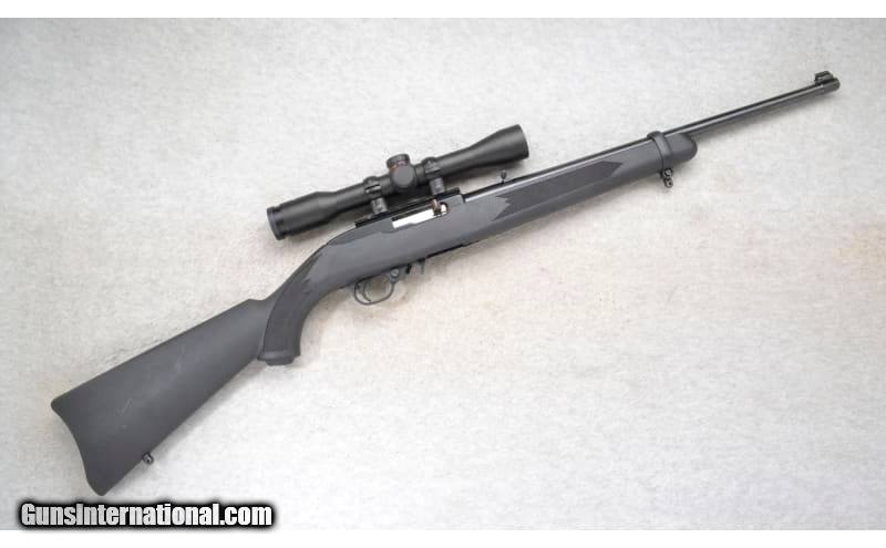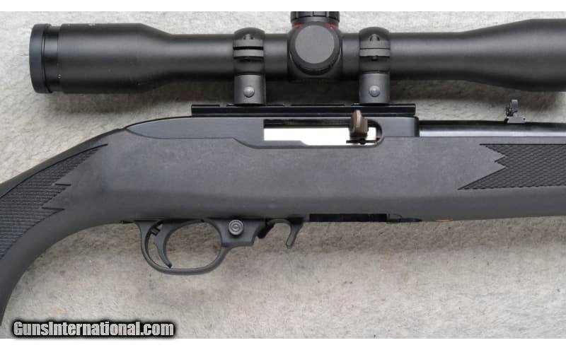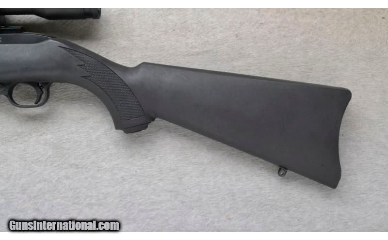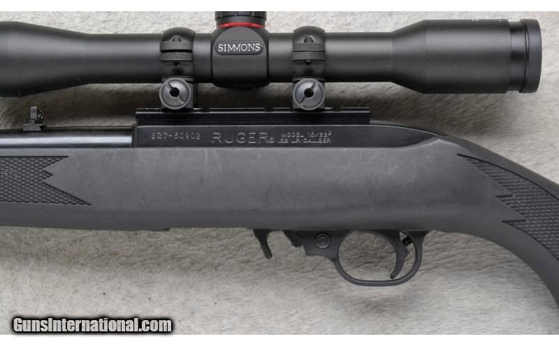 Description: This Ruger Model 10/22 is a right hand semi-auto rifle in .22 Long Rifle Cal. It has an 18.5 inch barrel. A raised blade front sight and a folding adjustable notch middle sight. It is outfitted with a Simmons 4x32 22 Mag Scope. The butt stock is a checkered grip black polymer pistol grip with a cap. The forearm is a checkered grip black polymer with a barrel band. .22 Long Rifle SOLD Chambers: 10 round rotary magazine. Metal Condition: Excellent. Bore Condition: Excellent. Barrels: 18.5 inch barrel. Stock Dimensions: LOP 13 1/4 inches. Fore End: Checkered grip black polymer with a barrel band. Butt Pad: Checkered curved black polymer. Weight: 5 lb. 4 oz. Sights: Raised blade front. Folding adjustable notch middle. Simmons 4x32 Item Location: Richfield, WI |