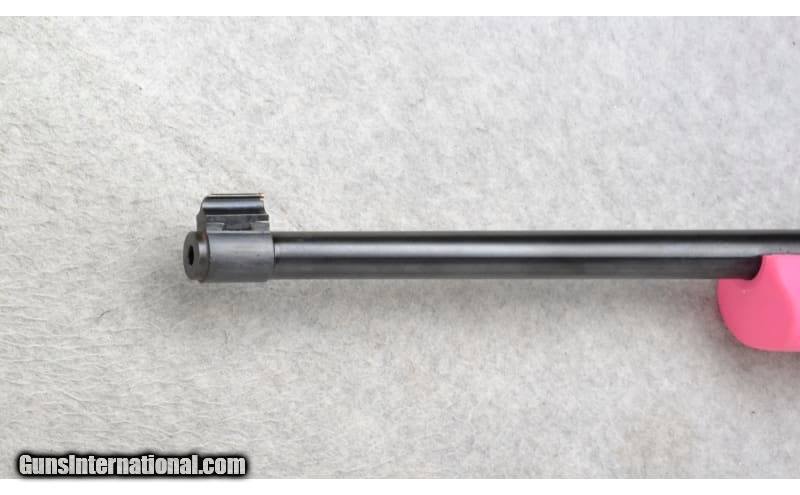 Description: This Ruger Model 10/22 is a right hand semi-auto rifle in .22 Long Rifle Cal. It has an 18.5 inch barrel. A raised blade front sight with a brass bead and a folding adjustable notch middle sight. It is outfitted with a BSA 3-9x32 22 Special Scope. The butt stock is a textured grip pink rubber coated pistol grip. The forearm is a textured grip pink rubber coated with finger grooves. .22 Long Rifle SOLD Chambers: 10 round rotary magazine. Metal Condition: Good. Barrel has a little minor freckling. Bore Condition: Excellent. Barrels: 18.5 inch. Stock Dimensions: LOP 13 3/4 inches. Fore End: Textured grip pink rubber coated with finger grooves. Butt Pad: Hogue black rubber recoil pad. Weight: 6 lb. 0 oz. Sights: Raised blade front with a brass bead. Folding adjustable notch middle. BSA 3-9x32 22 Special Scope. Item Location: Richfield, WI |