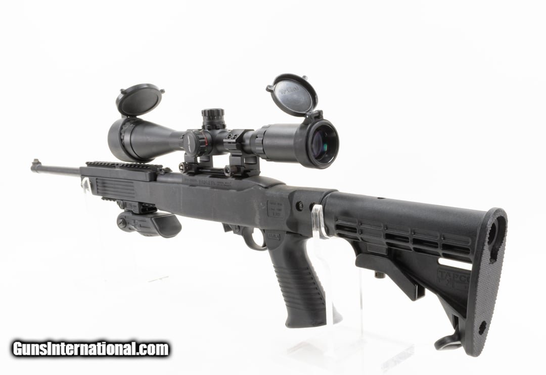 Description: Guns Listing ID: 1390152 Manufacturer: Ruger Model: 10/22 Carbine Condition: Very good Caliber: .22 LR Action: Semi-Auto Barrel Length: 18.5 Overall Length: 33.75\" (37.4\" with stock fully extended) Capacity: 10+1 Features: Mounted Center Point scope, Tapco Intrafuse 10/22 Takedown Rifle System (UPC: 751348008615), Tapco adjustable stock, Tdi Arms folding vertical grip, top & bottom picatinny rails Inventory: Firearm, (1) 10-rd BX-1 magazine, Center Point Scope • We do not test fire used guns. All guns are function checked once we receive them. Unless stated otherwise, this firearm is functional. SOLD Manufacturer: RUGER Model: 10/22 Caliber Info: .22 LR Condition: Used - Non-Certified Barrels: 18 BARREL Finish: BLACK |