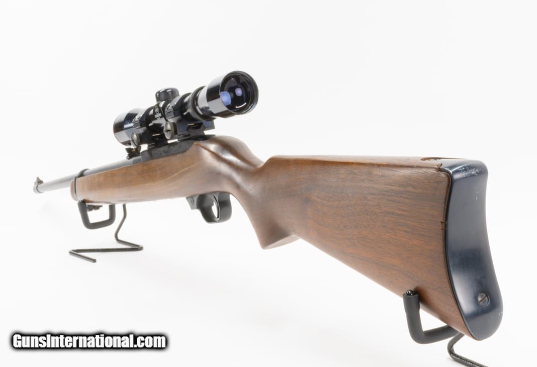 Description: Guns Listing ID: 396411 Third Year Ruger Model 10/22 .22LR w/ Scope Mfd. 1966 Manufacturer: Ruger Model: 10/22 Condition: Very good Caliber: .22 LR Action: Semi-Auto Barrel Length: 16\" Overall Length: 36.75\" Capacity: 10+1 Features: Five-digit serial number, mounted Simmons 4x32 scope, detachable box magazine, fixed stock Notes: Manufactured in 1966. Inventory: Firearm with scope only. • Please be aware that we have not test fired this gun. Unless otherwise stated, expect this firearm to fire and function safely. SOLD Manufacturer: RUGER Model: 10/22 Caliber Info: .22 LR Condition: Used - Non-Certified Barrels: 16 BARREL Action: SEMI AUTOMATIC Finish: WOOD AND BLACK Weight: not specified |