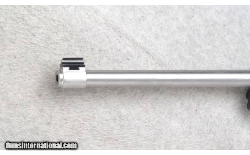 Description: This Ruger Model 10/22 is a right hand semi-auto rifle in .22 Long Rifle Cal. It has an 18.5 inch stainless steel barrel. A raised blade front sight and a folding adjustable notch middle sight. It has a sight mount base installed. The butt stock is a stippled and checkered grip black polymer pistol grip. The forearm is a stippled grip black polymer with a barrel band. .22 Long Rifle SOLD Chambers: 10 shot rotary magazine. Metal Condition: Very Good. A few minor use marks. Bore Condition: Excellent. Barrels: 18.5 inch stainless steel. Stock Dimensions: LOP 13 1/4 inches. Fore End: Stippled grip black polymer. Butt Pad: Checkered black polymer. Weight: 4 lb. 8 oz. Sights: Blade front with a brass bead. Folding adjustable notch middle. Sight mount base is installed. Item Location: Richfield, WI |