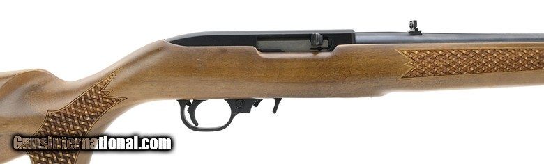 Ruger 10/22 .22LR caliber rifle. Special edition with full length stock and basket weave checkering. The wood has some light marks.