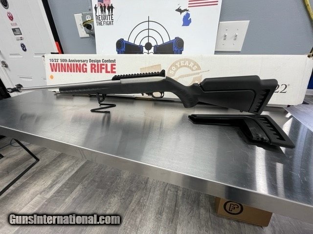 Description: Guns Listing ID: 481139 This firearm is new. GDC does not have a upc to add as new.. IT IS NOT USED. This is a contest winner. Awesome rifle. turm, Ruger & Company, Inc., in celebration of the 50th anniversary of the 10/22®, is proud to announce the 10/22® 50th Anniversary Design Contest Winning Rifle. The contest winning rifle, available only in 2014, takes the legendary action and renowned, reliable rotary magazine of the 10/22® and combines them with the best features of other popular Ruger® rifles. The result is a fun, versatile .22 rifle that enthusiasts of all ages are sure to enjoy. The 10/22® 50th Anniversary Design Contest Winning Rifle is the result of Ruger‚‚s most extensive Voice of the Customer Program ever: In late 2013, Ruger invited fans to submit ideas for their ideal 50th Anniversary 10/22®. Ten contest finalists were put to a vote on the Ruger and, after almost 40,000 votes were tallied, the winner emerged! \"For 50 years, the Ruger 10/22® has been America‚‚s favorite .22 rifle and this Contest Winning rifle is a great representation of what Ruger is trying to do today - listen to its customers,\" said Chris Killoy, Ruger President and Chief Operating Officer. \"The idea for this gun was submitted by one of our customers, and voted on by many more.\" Based on the original 10/22® rifle, this model features the ergonomic, lightweight black composite stock and the Ruger® Modular Stock System from the Ruger American Rimfire™ rifle. It also includes a protected, non-glare post front sight, ghost ring adjustable rear aperture sight, and Picatinny rail from the popular Gunsite Scout Rifle. The special edition rifle is rounded out with a precision-rifled, cold hammer-forged, stainless steel barrel, which is capped with a blued alloy steel SR-556®/Mini-14®-style, 1/2‚‚-28 thread flash suppressor. To further recognize the 50th Anniversary, this rifle and all 2014 production Ruger® 10/22® rifles will feature a special, limited-time \"50th Anniversary Logo\" bolt marking, \"The Ruger 10/22 • 22 LR - Fifty • 1964-2014\" receiver markings and a commemorative \"50th Anniversary Logo\" bo SOLD Manufacturer: RUGER Model: 10/22 50TH ANNIVERSARY Caliber Info: 22 LR Condition: Used - Non-Certified Barrels: 21.5 BARREL Finish: STAINLESS AND BLACK |