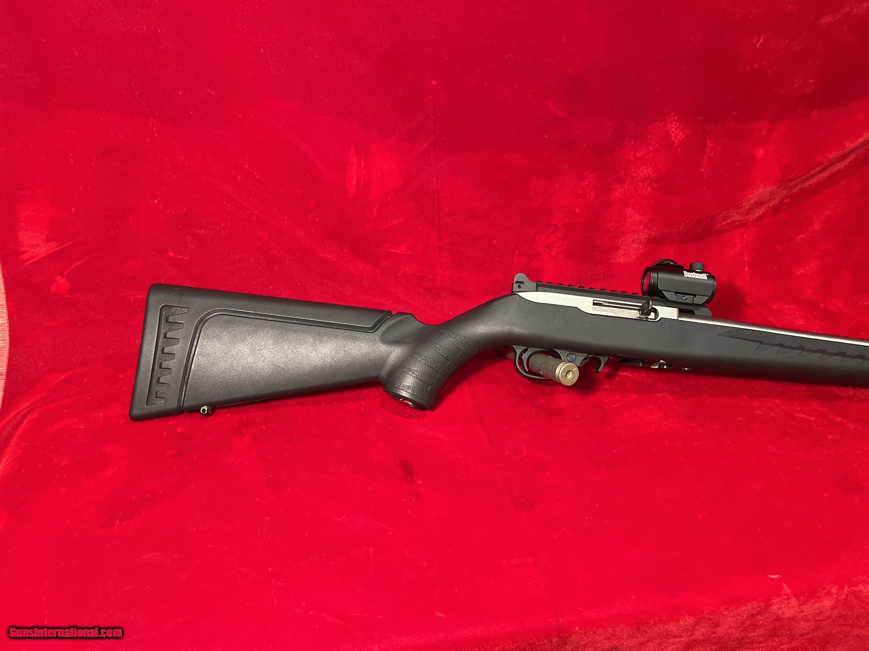 Description: Up for sale we have a Ruger 10/22 Anniversary Edition 50 Year. Semi-Automatic Rifle .22 LR Caliber 1964-2014. This rifle is in like-new condition that has been very lightly used. The barrel is 20 1/2 inches long with a mint bore. There is a bird cage muzzle break giving the barrel a unique appearance that was a factory feature on all anniversary edition rifles to include the mini 14 and 10/22. Features the original iron sights as well as a bushnell mini-holographic sight. This rifle is all original and one of 25,000 ever produced. Comes with one 10-round Ruger magazine. Shipping is 60$ To purchase this firearm simply send me a message via GI with your contact info. I will respond via e-mail with all the information required to complete the purchase. If you must contact me via phone, please text. I work a full time job and its not in a gun store. Keep in mind I am on the West coast and if you call me at 4AM before I've had my coffee we will be off to a rough start. I am an FFL. I will provide my FFL with the shipped item. Total price is sales price plus shipping price plus insurance if desired (1.50 per 100 dollars declared value-optional but recommended) . SOLD Rifle Caliber: .22 Long Rifle |