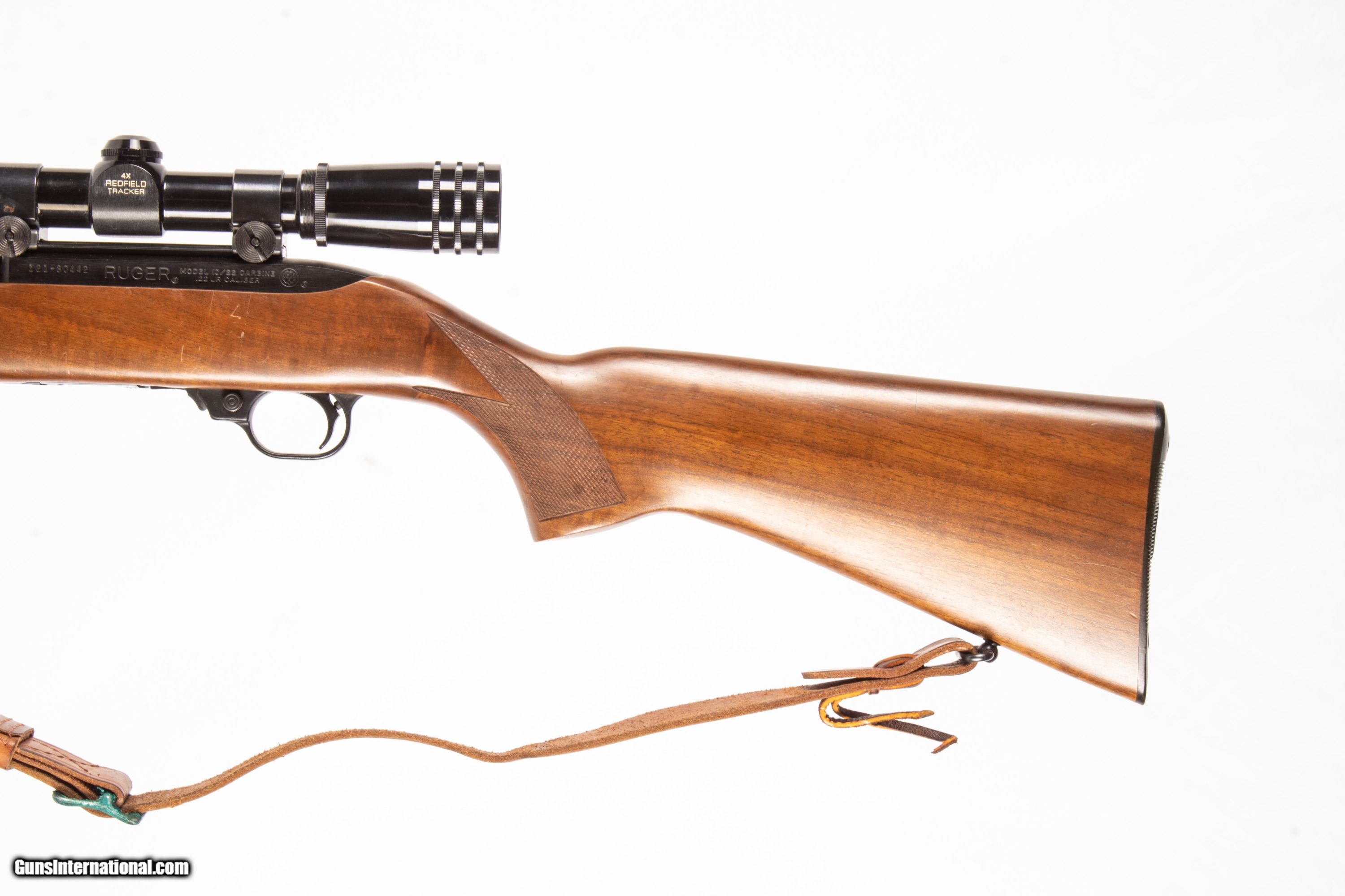 Ruger 10/22 Carbine chambered in 22 LR with an 18 inch barrel bright & shiny bore and a Redfield 4x optic. This is a used firearm that is in good condition and is covered by Dury's Lifetime Warranty.