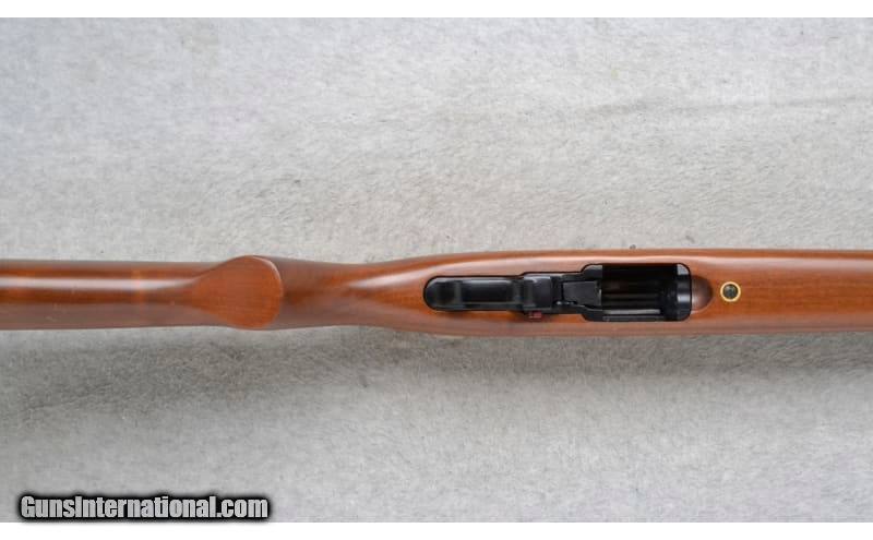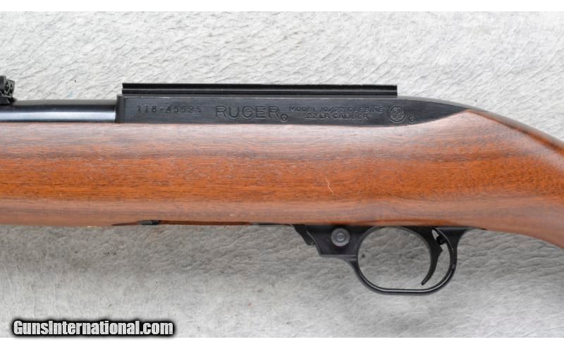 Description: This Ruger Model 10/22 Carbine is a right hand semi-auto rifle in .22 Long Rifle Cal. It has an 18.5 inch barrel. A blade front sight, folding adjustable notch middle sight and a scope mount base attached. The butt stock is a smooth grip hardwood pistol grip. The forearm is a smooth grip hardwood with a barrel band. .22 Long Rifle SOLD Chambers: 10 round rotary magazine. Metal Condition: Good. Barrel has a little minor freckling. Wood Condition: Good. Some light handling marks. Bore Condition: Excellent. Barrels: 18.5 inches. Stock Dimensions: LOP 13 1/4 inches. Fore End: Smooth grip hardwood with a barrel band. Butt Pad: Smooth curved black plastic. Weight: 6 Lb. 2 Oz. Sights: Blade front. Folding adjustable notch middle. Scope mount base attached. Item Location: Richfield, WI |