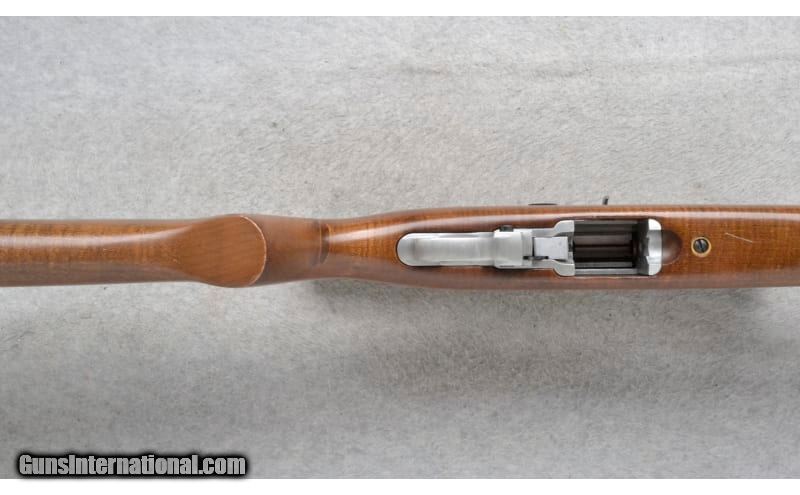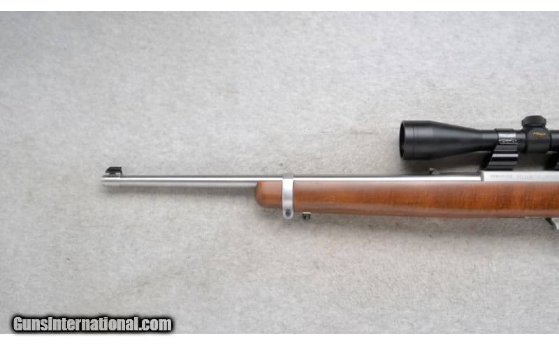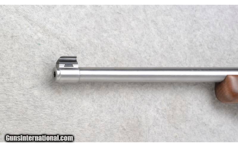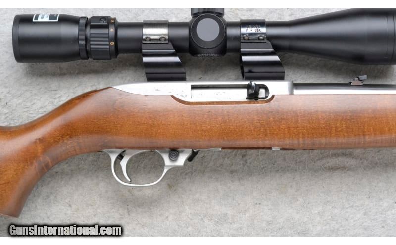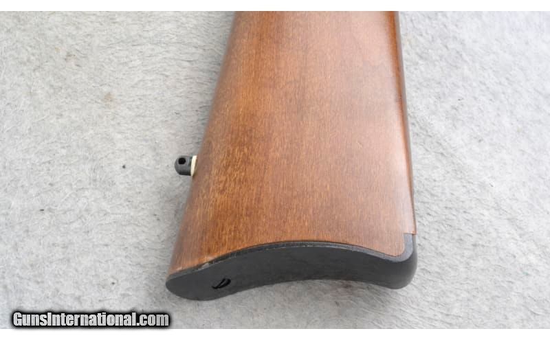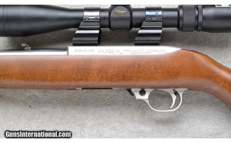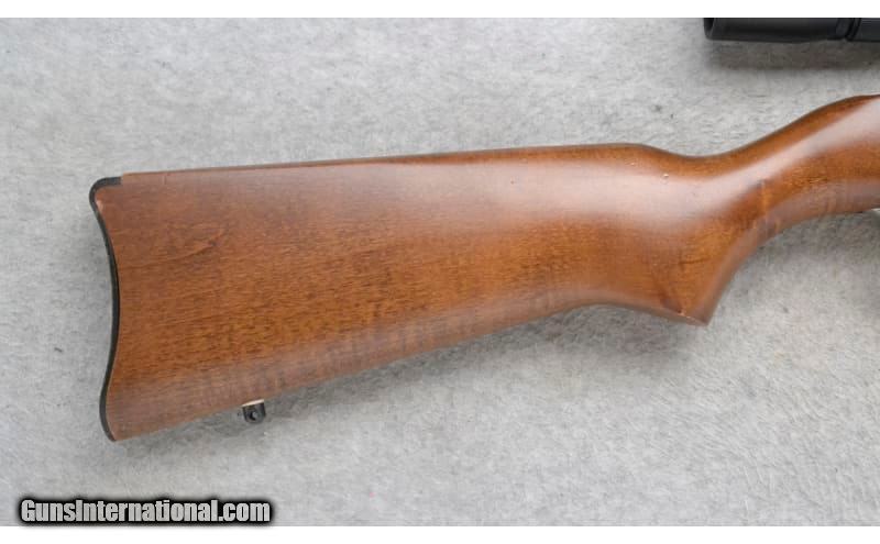 Description: This Ruger Model 10/22 Carbine is a right hand semi-auto rifle in .22 Long Rifle Cal. It has an 18.5 inch stainless steel barrel. A raised blade front sight and a folding adjustable notch middle sight. It is outfitted with a Nikon 3-9x40 Scope. The butt stock is a smooth grip hardwood pistol grip. The forearm is a smooth grip hardwood with a barrel band. .22 Long Rifle SOLD Chambers: 10 round rotary magazine. Metal Condition: Very Good. Wood Condition: Very Good. Some minor handling marks. Bore Condition: Excellent. Barrels: 18.5 inch stainless steel. Stock Dimensions: LOP13 3/8 inches. Fore End: Smooth grip hardwood with a barrel band. Butt Pad: Curved hard black plastic. Weight: 6 Lb. 2 Oz. Sights: Raised blade front. Folding adjustable middle. Nikon 3-9x40 Scope. Item Location: Richfield, WI |