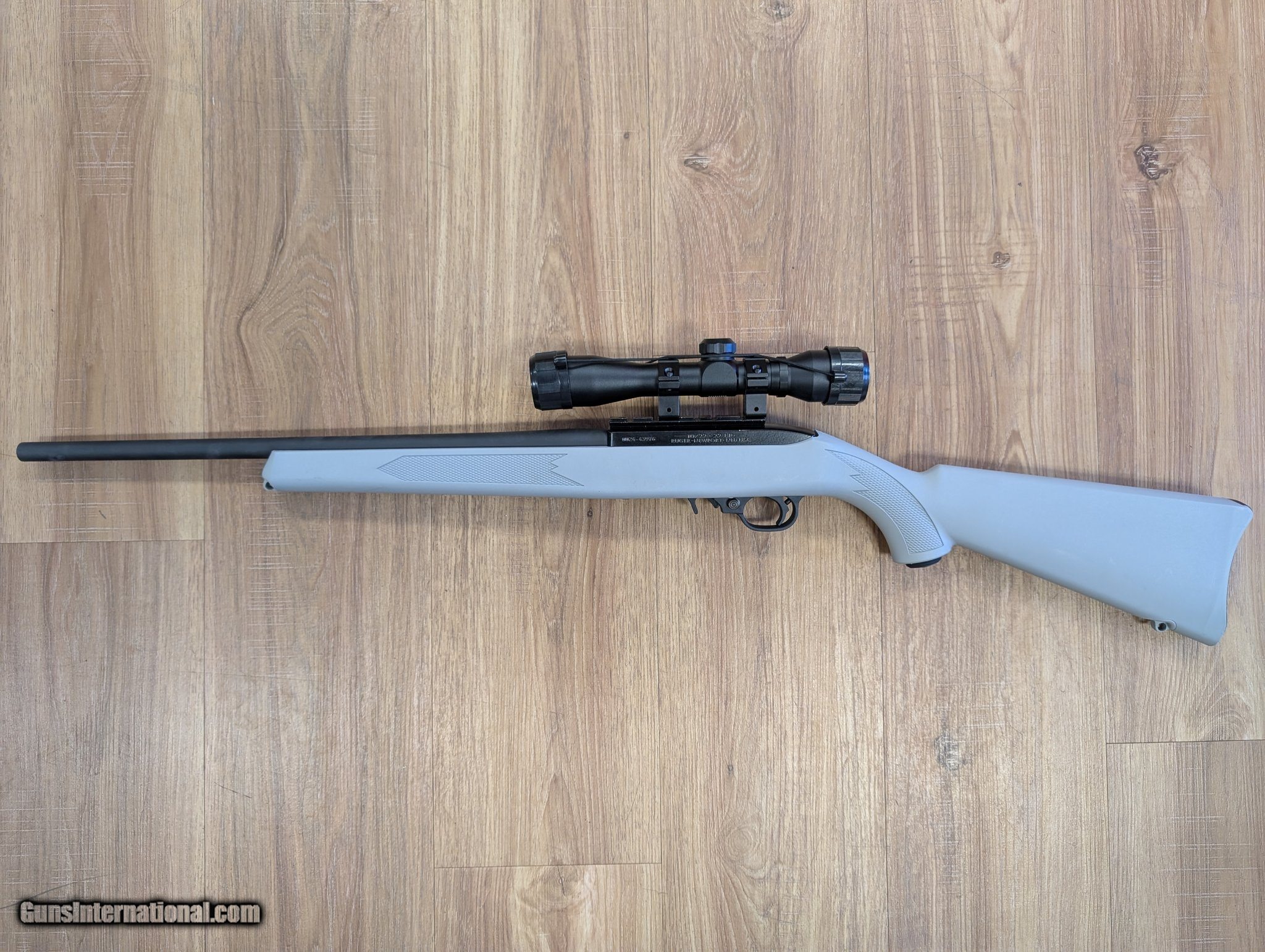 Description: Guns Listing ID: 511376 The Ruger 10/22 Carbine features a 18.50\" cold hammer-forged barrel that is locked into the receiver by a two screw V-block system. It features a factory-installed combination scope base adapter for both Weaver-style and .22 tip-off scope mounts. It has a grey synthetic stock, satin black finish, and weighs in at about 4.5 pounds. The safety is a positive, push-button, cross-bolt manual safety, and the polymer trigger housing assembly is made of high-tech material of impact and abrasion resistance among other benefits. SOLD Manufacturer: RUGER Model: 10/22 CARBINE Caliber Info: .22 LR Condition: Used - Non-Certified Barrels: 18.5 BARREL Action: SEMI AUTOMATIC Weight: 6.6 lbs. |