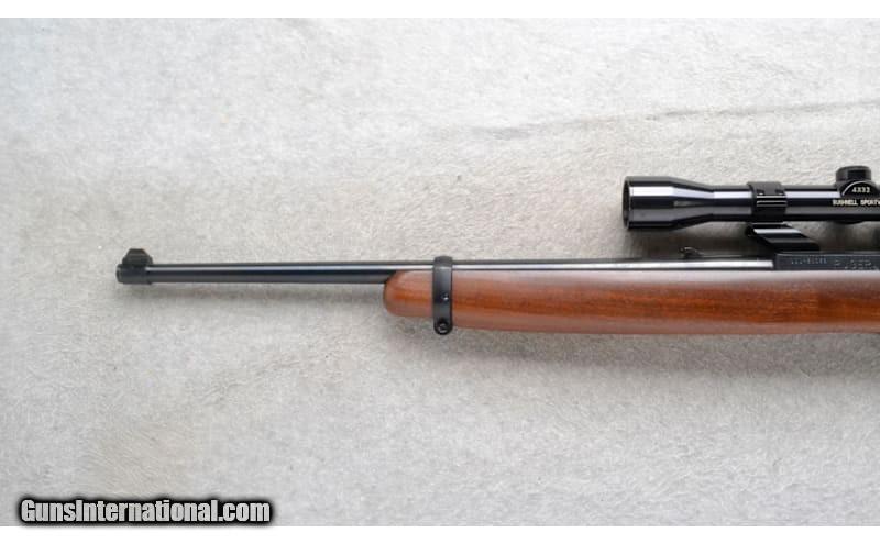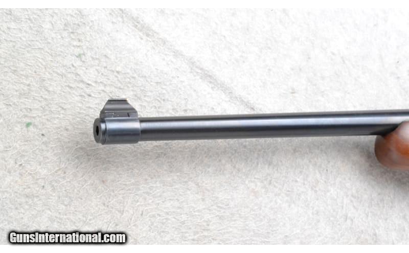 Description: This Ruger Model 10/22 Carbine is a right hand semi-auto rifle in .22 Long Rifle Cal. It has an18.5 inch barrel. A blade front sight and folding adjustable notch middle sight. It is outfitted with a Bushnell 4x32 Scope. The butt stock is a smooth grip hardwood pistol grip. The forearm is a smooth grip hardwood with a band. .22 Long Rifle SOLD Chambers: 10 round rotary magazine. Metal Condition: Good. Barrel has some very fine freckling. Wood Condition: Good. Some minor use marks. Bore Condition: Excellent. Barrels: 18.5 inch. Stock Dimensions: LOP 13 1/4 inches. Fore End: Smooth grip hardwood with a band. Butt Pad: Curved aluminum plate. Weight: 5 lb. 14 oz. Sights: Blade front. Folding adjustable notch middle. Bushnell Sportview 4x32 Scope. Item Location: Richfield, WI |