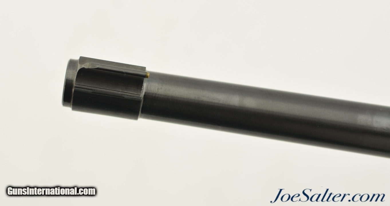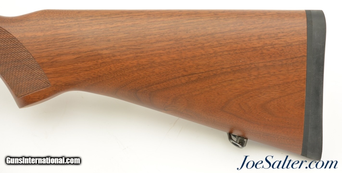 Description: Serial #236-34509, .22 LR, 18 1 / 2 inch barrel with a bright, excellent bore. This is the Ruger model 10/22 Carbine Sporter featuring a checkered walnut stock manufactured in 1993. The classic semi-automatic carbine is in excellent condition retaining virtually all, 98-99% of the original blue finish on the barrel and matte finish on the frame. The walnut stock is likewise excellent showing very minor handling marks and blemishes. It comes with the owners manual, one & ten round magazine and has sling swivels installed. It is equipped with standard Ruger flip up rear and brass bead front sights and is drilled and tapped for an optics mount. FFL SOLD |