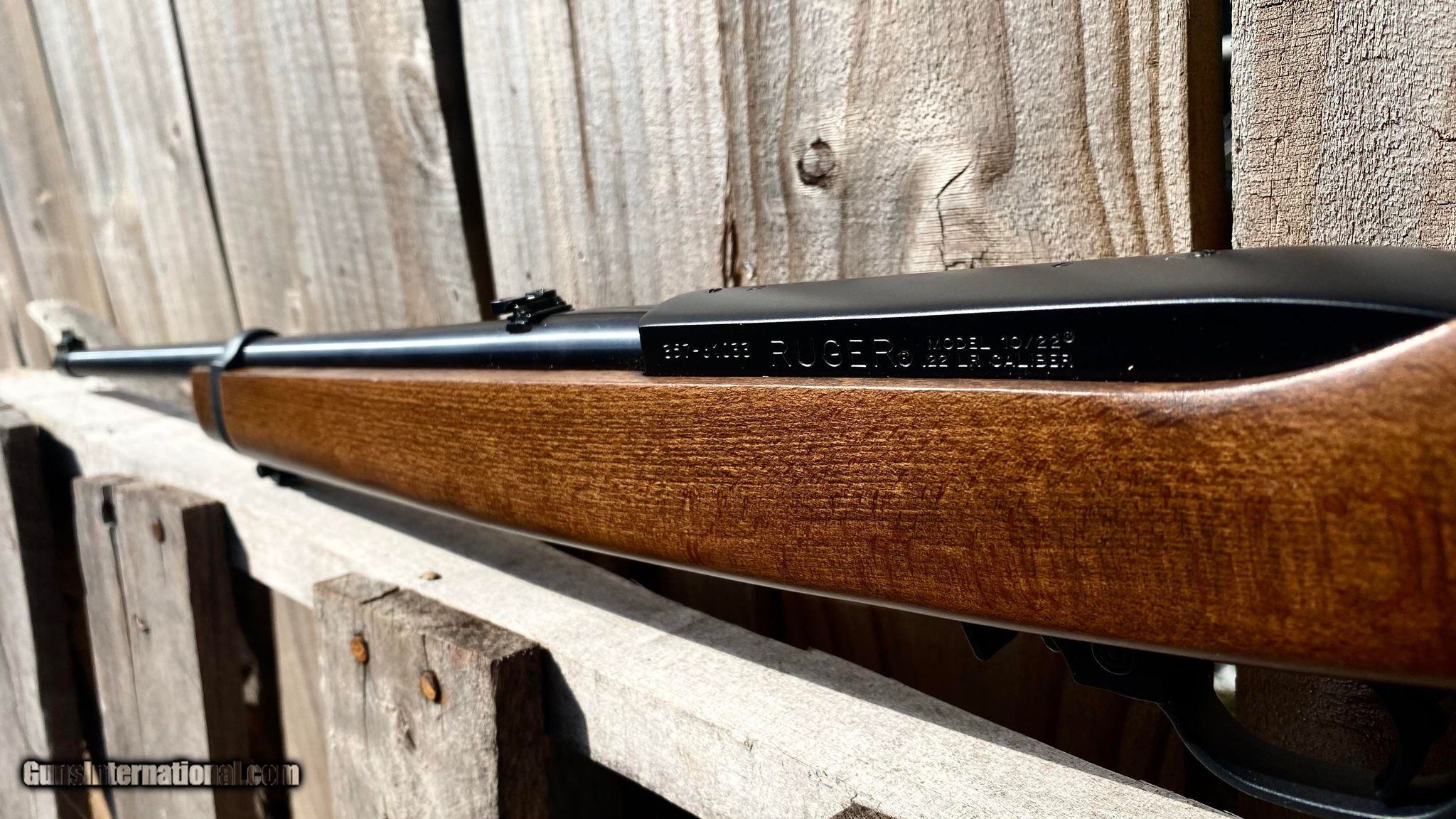 Description: Guns Listing ID: 618734 Ruger Ruger‚‚s 10/22 Carbine‚‚s legendary action is a tried and true Ruger design and ensures consistent reliable performance. Its cold hammer-forged barrel is locked into the receiver by a unique two-screw V-block system. The easy-to-use extended magazine release provides smooth no-fuss removal of flush-mounted magazine. The 10/22 Carbine also utilizes a cross-bolt safety polymer trigger housing assembly detachable rotary magazine. Brand: Ruger - Model: 10/22 Carbine - Caliber: 22 LR - Capacity: 10+1 - Type: Rifle - Action: Semi-Automatic - Finish: Matte Black - Stock: Hardwood - Sight: Front- Gold Bead/Rear- Folding Leaf - Safety: Cross Bolt Safety - Barrel Length: 18.5 - (1) 10rd Magazine Firearm has little to no blemishes. One scratch on wood stock near bottom. One scratch on handguard. FIREARM ONLY. NO CASE. PRICE FIR SOLD Manufacturer: RUGER Model: 10/22 CARBINE Caliber Info: .22 LR Condition: Used - Non-Certified Barrels: 18.5" barrel |