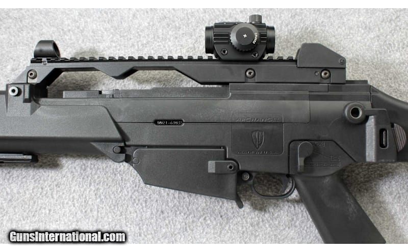 Description: This Ruger 10/22 has been put into an Archangel aftermarket G36 chassis. .22 Long Rifle SOLD Metal Condition: Very good with some scratches Bore Condition: Very good Barrels: 18.5 inch barrel Weight: 7 lbs. 8 oz. Sights: Aperture rear sight with blade front and optic Item Location: Lehi, UT |