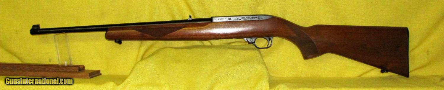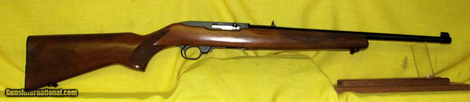 Description: RUGER model 10-22 (DELUX) in .22 LR CAL., with 18" barrel. Color BLUE. COMES WITH CHECKERED WALNUT FORE END AND PISTOL GRIP STOCK, SLIGHTEST HANDLING MARKS ON STOCK OTHERWISE STOCK EXCELLENT, 98% ORIGINAL BLUE, BORE EXCELLENT COMES WITH ONE FACTORY TEN ROUND MAGAZINE. Condition 97%. SOLD |