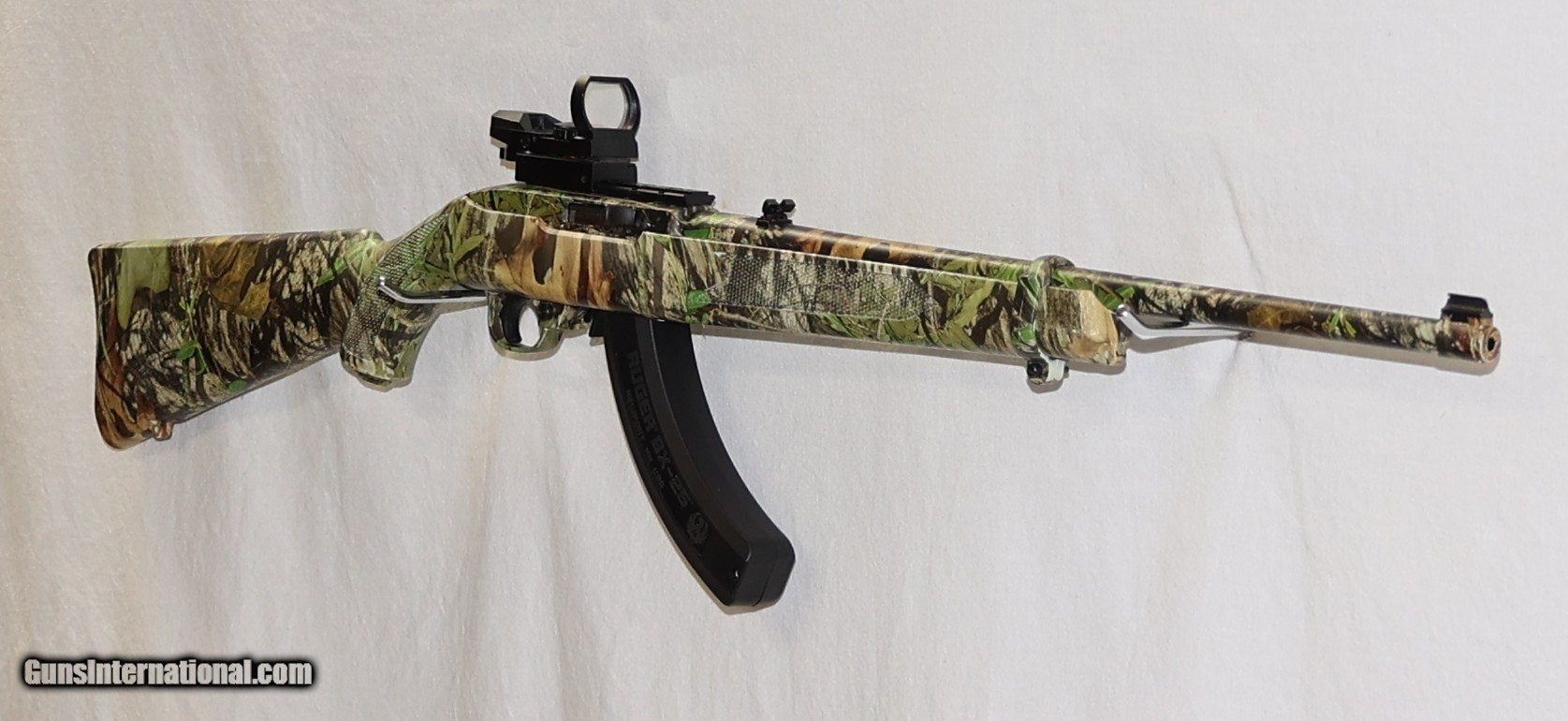 Description: Guns Listing ID: 605316 Pre-owned Ruger 10/22 Fifty Year commemorative rifle made in 2014. This gun is in good condition, though the camo pattern has worn in spots - particularly the butt of the rifle. Included is a 25-round magazine and a Firefield red dot. The Ruger® 10/22® is one of the most popular and widely used .22 rifles in the US. And justifiably so—the 10/22 rimfire rifle has had a solid reputation for reliability and accuracy for over 50 years, making it a favorite for target shooting, plinking, and small game hunting. This Ruger 10/22 Go Wild Camo 22LR Semi-Auto Rifle features a single-piece synthetic camo stock and precision-rifled barrel. The 10/22 utilizes a blowback semi-auto action, and a 10-shot rotary magazine, both of which are legendary for reliability. This model comes with a fine, gold bead front sight and an adjustable, folding rear sight. The popularity of the Ruger 10/22 has led to a myriad of after-market 10/22 accessories, making it one of the most customizable firearms ever made. They say a picture is worth a thousand words. These photos are the best statement of condition; please review them carefully before purchasing. Manufacturer: RUGER Model: 10/22 fifty years 1964-2014 Caliber Info: .22 LR Condition: Used - Non-Certified Barrels: 18.5" BARREL Action: SEMI AUTOMATIC Finish: camouflage Price: $349.99 Contact Seller |