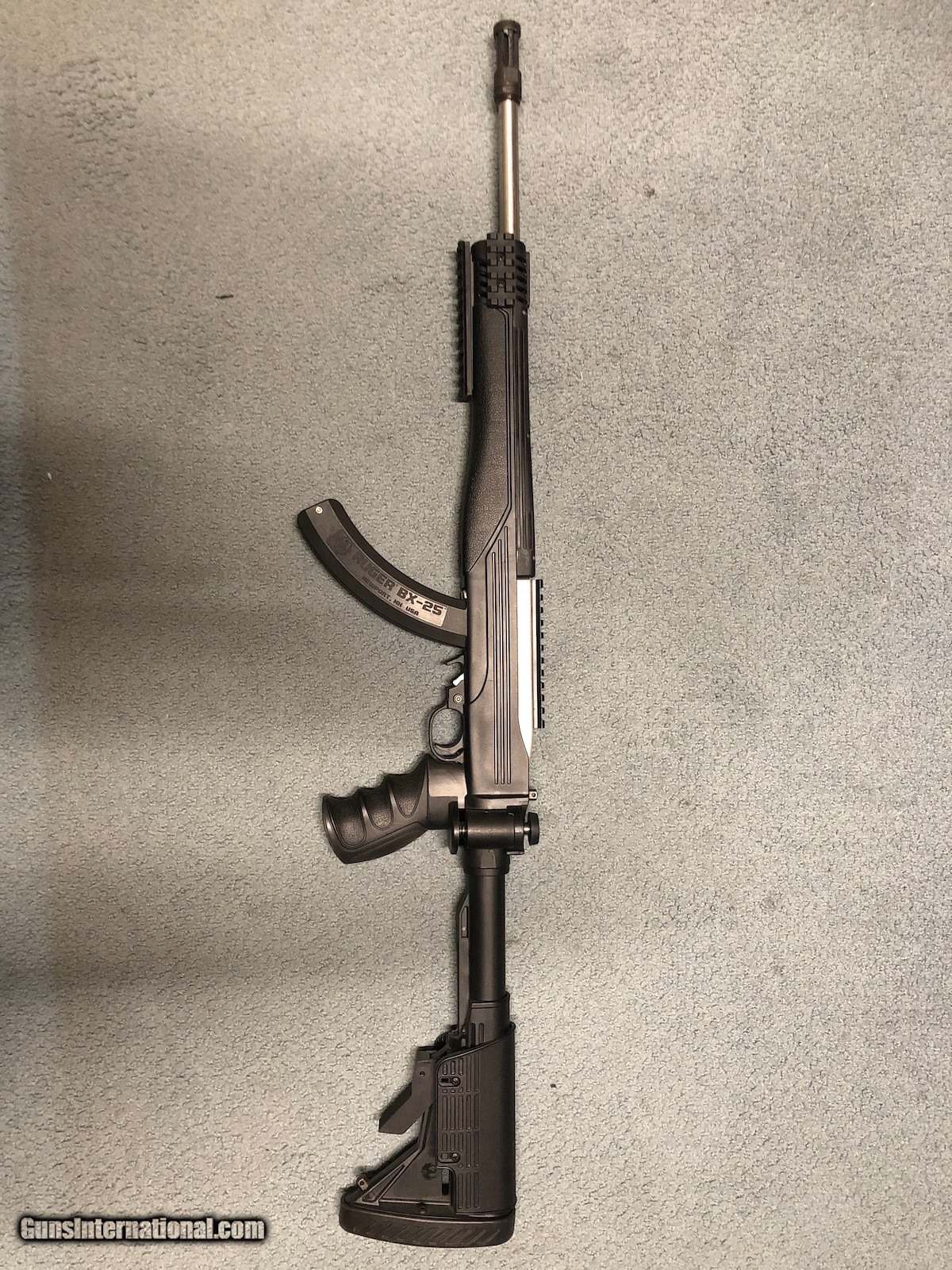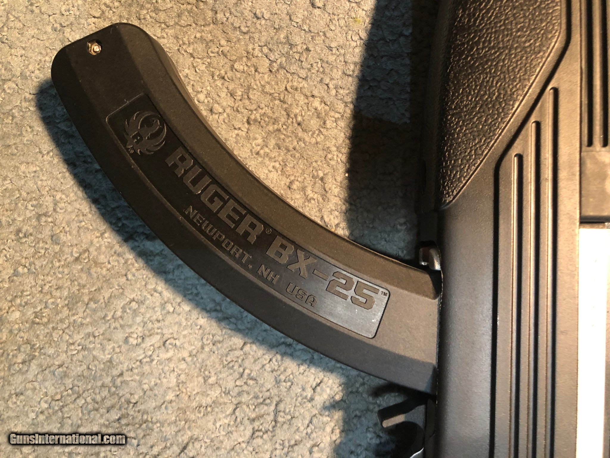 Description: Guns Listing ID: 488050 No case with one Ruger BX-25 magazine SOLD Manufacturer: RUGER Model: 10-22 Fifty Years Caliber Info: 22 LR Condition: Used - Non-Certified Barrels: 18 BARREL Finish: BLACK AND STAINLESS |
