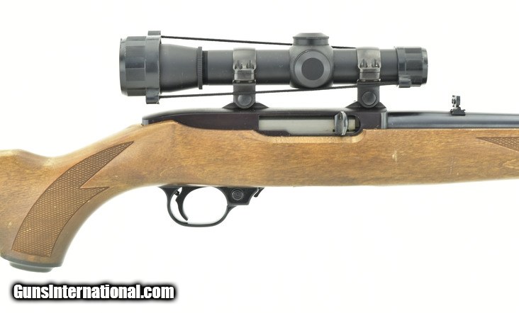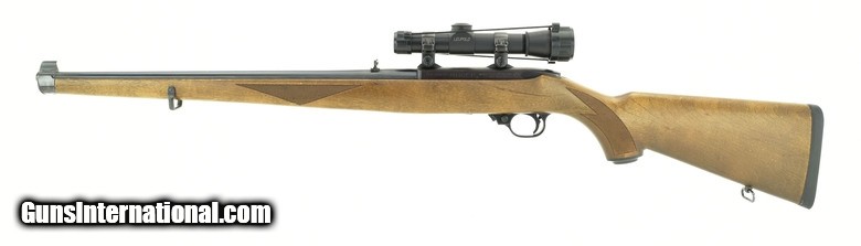 Ruger 10/22 International .22 WMR caliber carbine. Rare .22 Magnum semi-auto International model with full length stock. Has a Leupold 2.5X scope. Excellent condition.