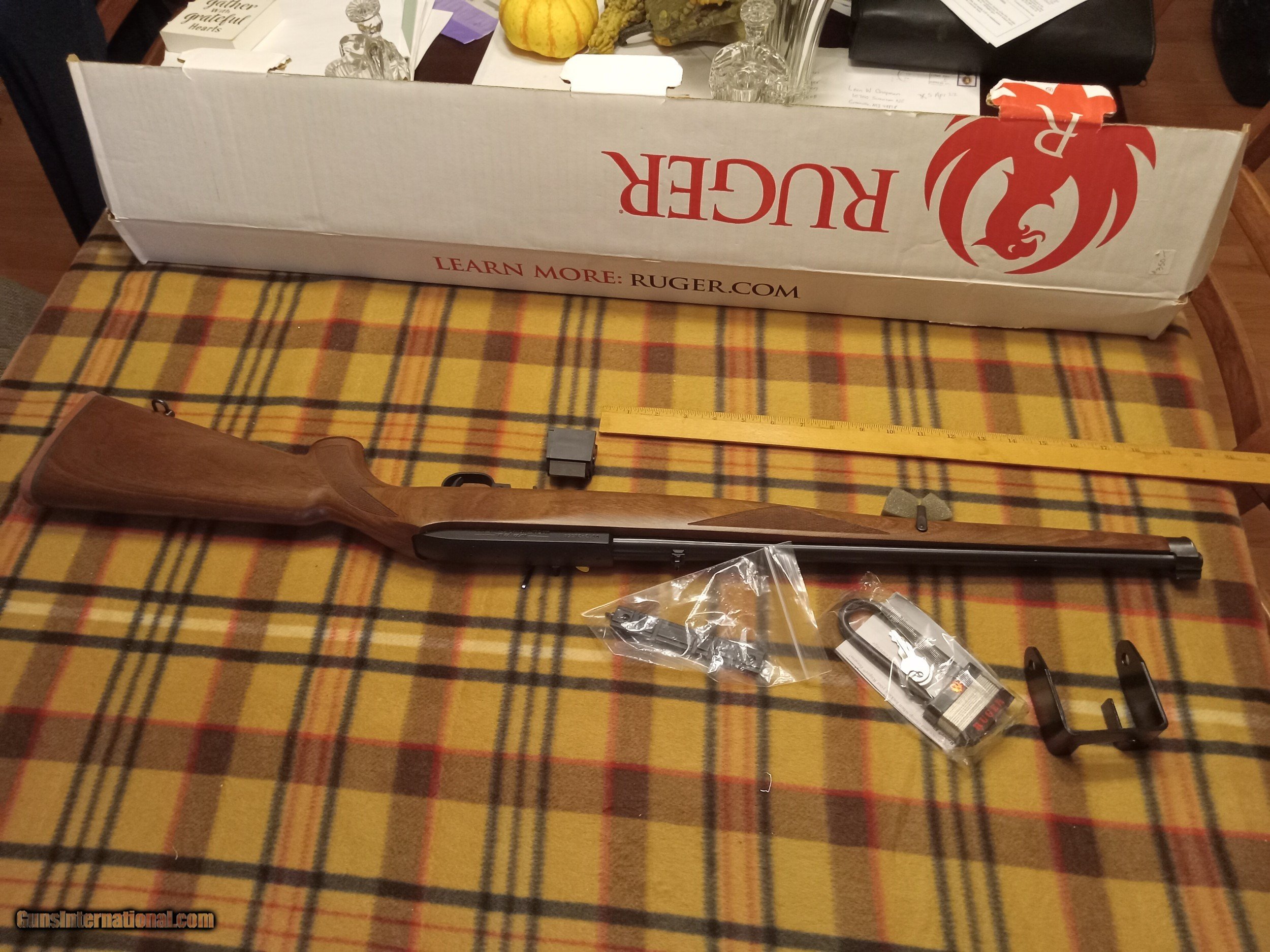 Description: This Ruger 10-22 has a beautiful full length stock. It is new unfired, and ready to ship out. SOLD Rifle Caliber: .22 Long Rifle Manufacturer: Ruger Model: 10-22 International Serial Number: 0012-28xxx Barrel Length: 18 Condition: New in box |
