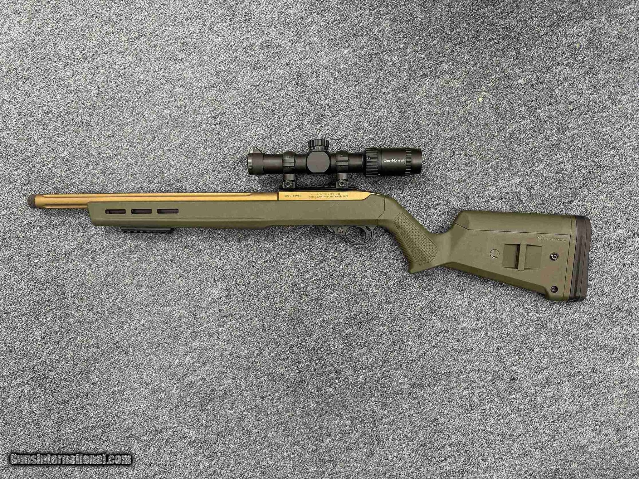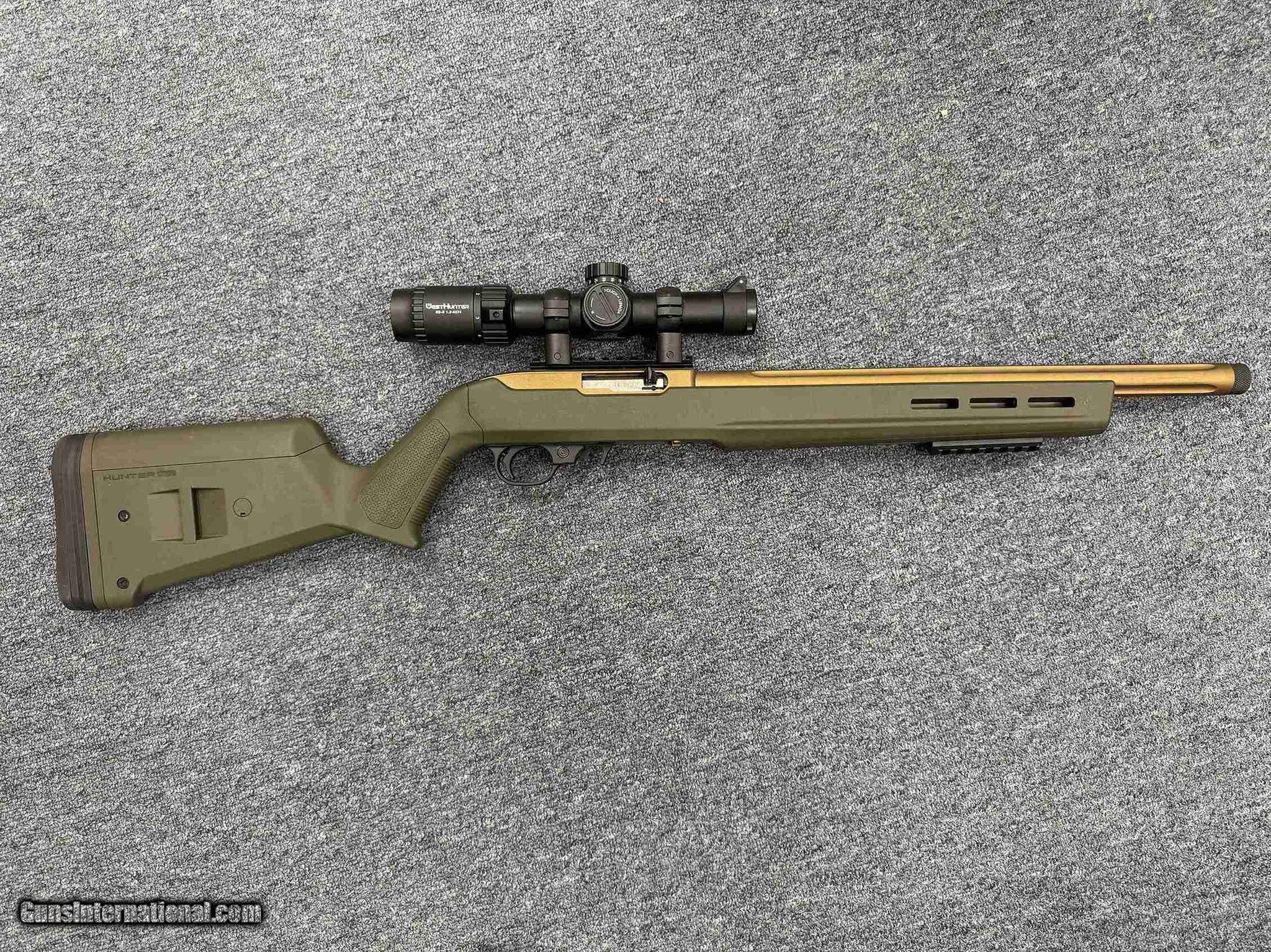 Description: Guns Listing ID: 561948 This rifle has a 16in threaded bronze barrel with a 10rd magazine and a Magpul ODG Hunter stock. It also has a 1.2-6x scope. SOLD Manufacturer: RUGER Model: 10/22 MAGPUL HUNTER Caliber Info: .22 LR Condition: Used - Non-Certified Barrels: 16.1 BARREL Action: SEMI AUTOMATIC Finish: OD GREEN Weight: 5 lbs. |